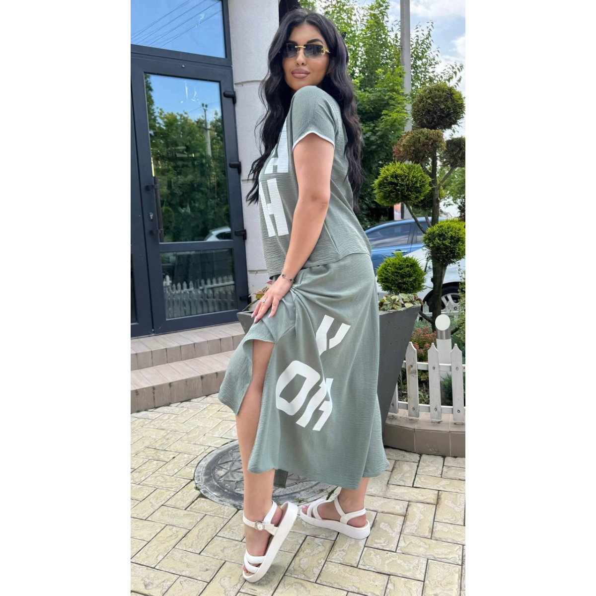 Футболка та спідниця мають вільний крій, який забезпечує свободу рухів та невимушений стиль, що ідеально підходить для повсякденного носіння.