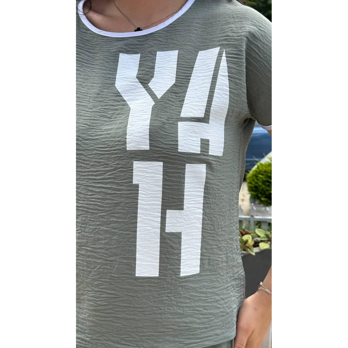 Відкрийте для себе ідеальне поєднання комфорту та стилю з нашим костюмом зі спідниці та футболки з американської креп жатки. Цей легкий і вільний костюм у яскравих кольорах із освіжаючими білими елементами стане вашим улюбленим вибором для літніх днів, даруючи вам неперевершений комфорт та елегантність.