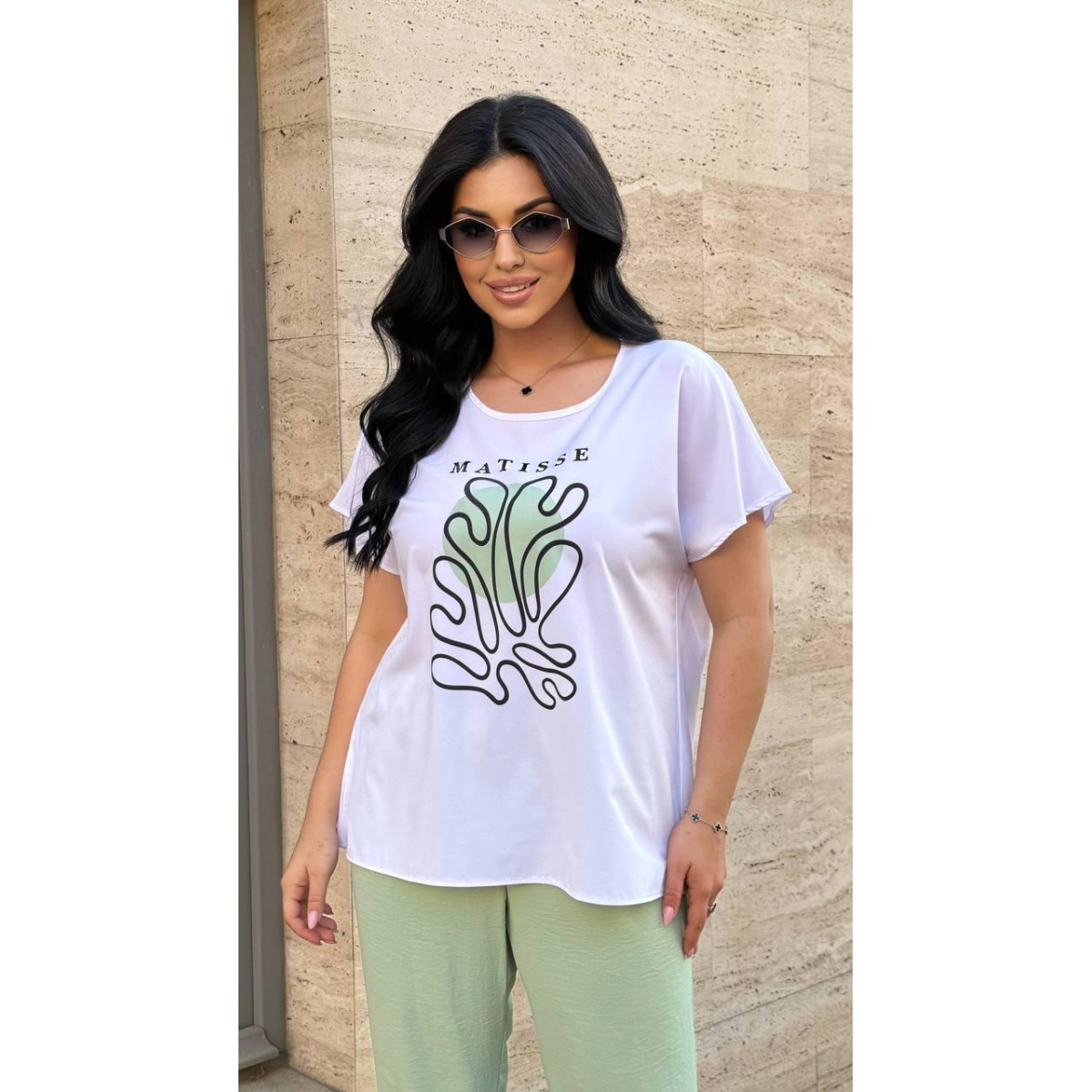 Футболка виконана з м“якої та комфортної тканини супер софт, що забезпечує приємні відчуття на шкірі. Футболка прикрашена яскравим принтом, що гармонійно поєднується з кольоровою гамою костюма, додаючи образу індивідуальності.