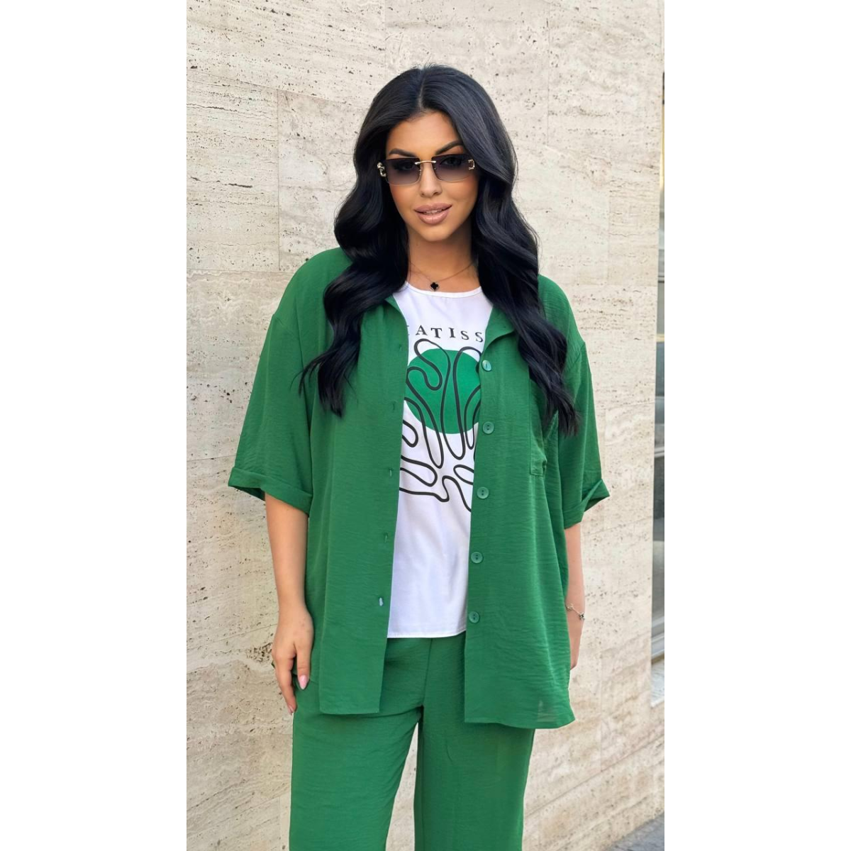Відкрийте для себе стиль і комфорт з нашим літнім жіночим костюмом, що включає штани та кардиган з креп жниварки і футболку з супер софт. Цей костюм ідеально поєднує в собі елегантність, зручність та яскраві елементи, створюючи гармонійний та модний образ для теплих днів.