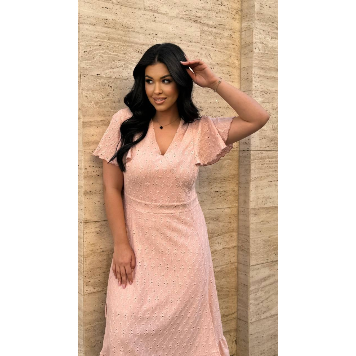 Елегантна імітація на запах додає сукні жіночності та витонченості, створюючи ефектний і стильний силует.