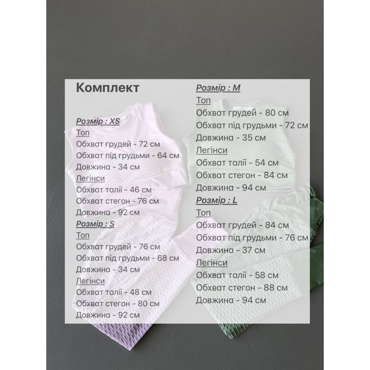 Відчуйте впевненість і комфорт з нашим фітнес-комплектом з топа і легінсів з жакардової тканини. Цей стильний і функціональний комплект стане вашим незамінним супутником на шляху до спортивних досягнень, підкреслюючи вашу красу й упевненість у кожному тренуванні.