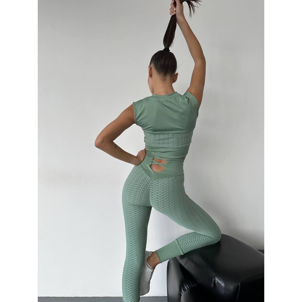 Відчуйте впевненість і комфорт з нашим фітнес-комплектом з топа і легінсів з жакардової тканини. Цей стильний і функціональний комплект стане вашим незамінним супутником на шляху до спортивних досягнень, підкреслюючи вашу красу й упевненість у кожному тренуванні.