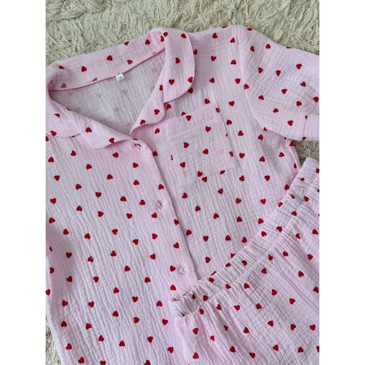 Дитяча муслінова піжама з серцями Рожевий, 122-128