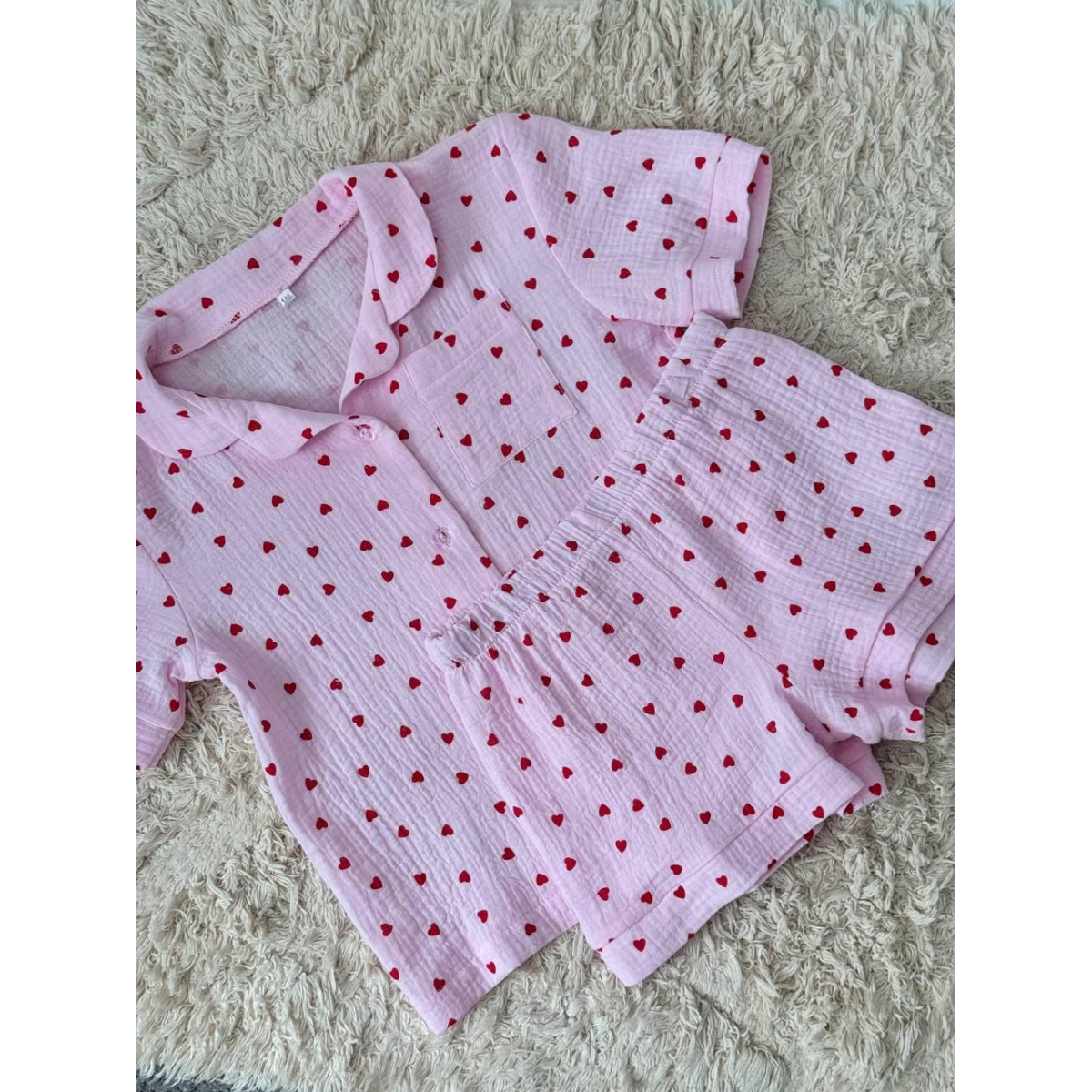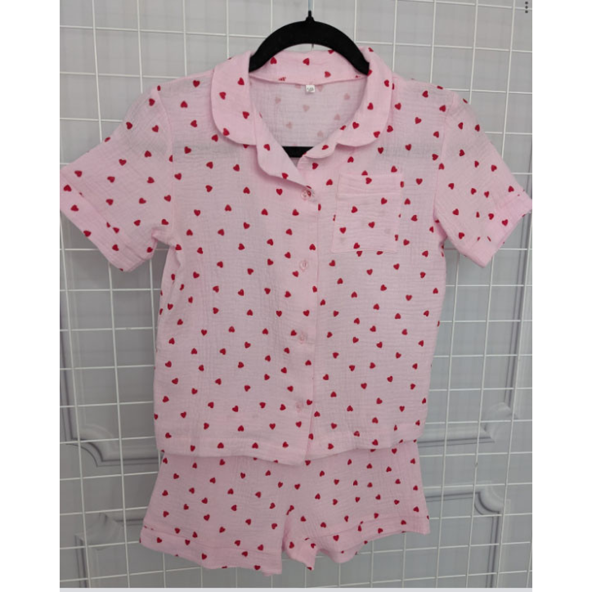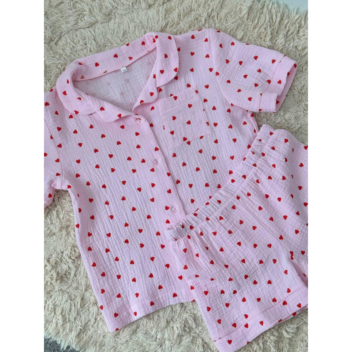 Дитяча муслінова піжама з серцями Рожевий, 134-140