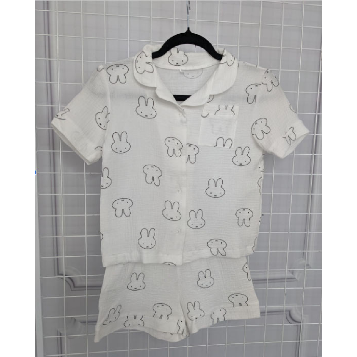 Дитяча піжама з мусліна шорти з сорочкою Молочний, Зайчики, 110-116