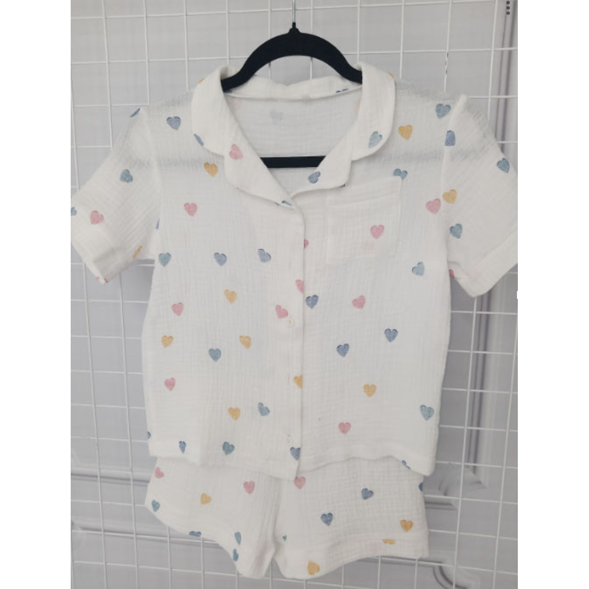 Дитяча піжама з мусліна шорти з сорочкою Молочний, Сині сердечка, 110-116