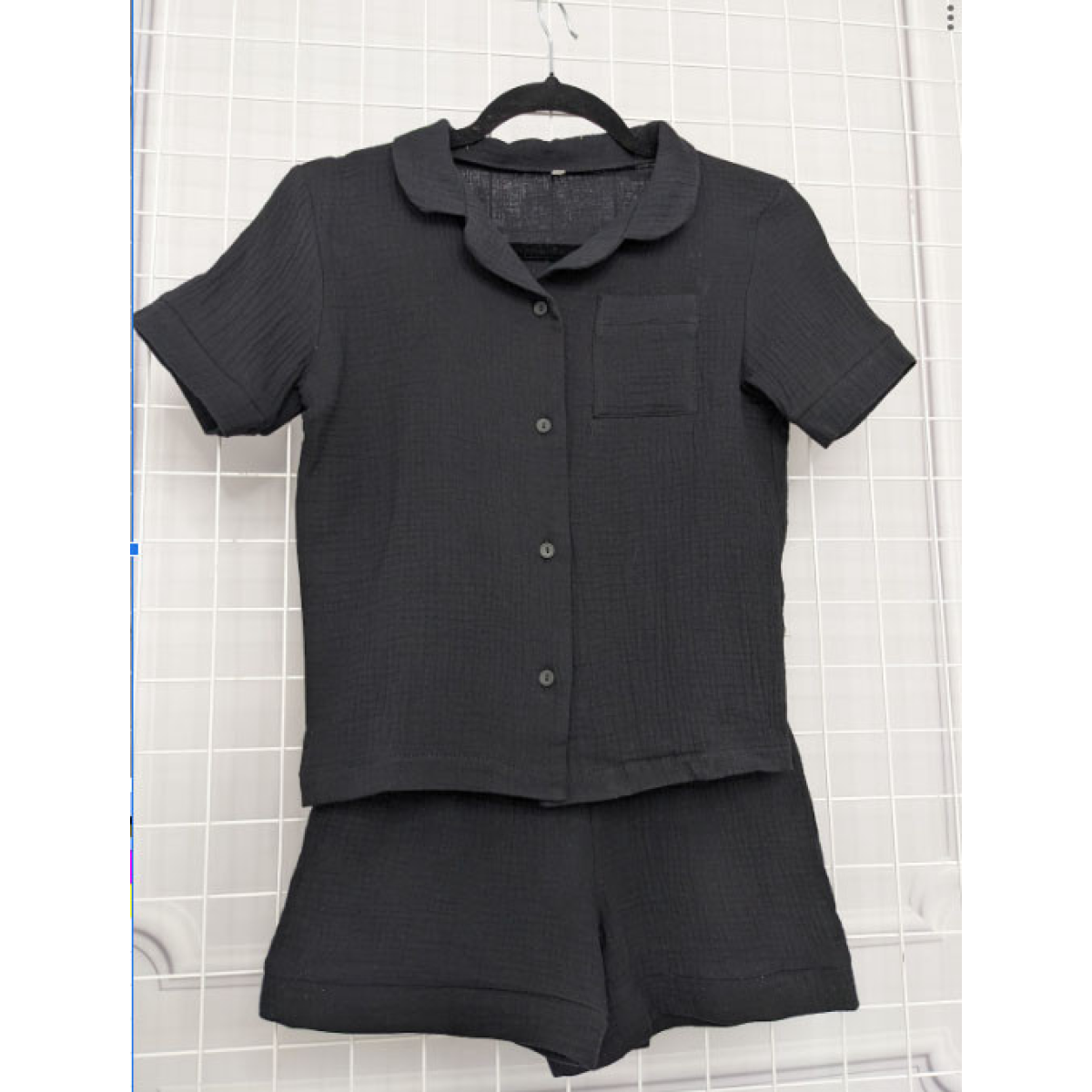 Дитяча піжама з мусліна шорти із сорочкою Чорний, Без візерунка, 146-152