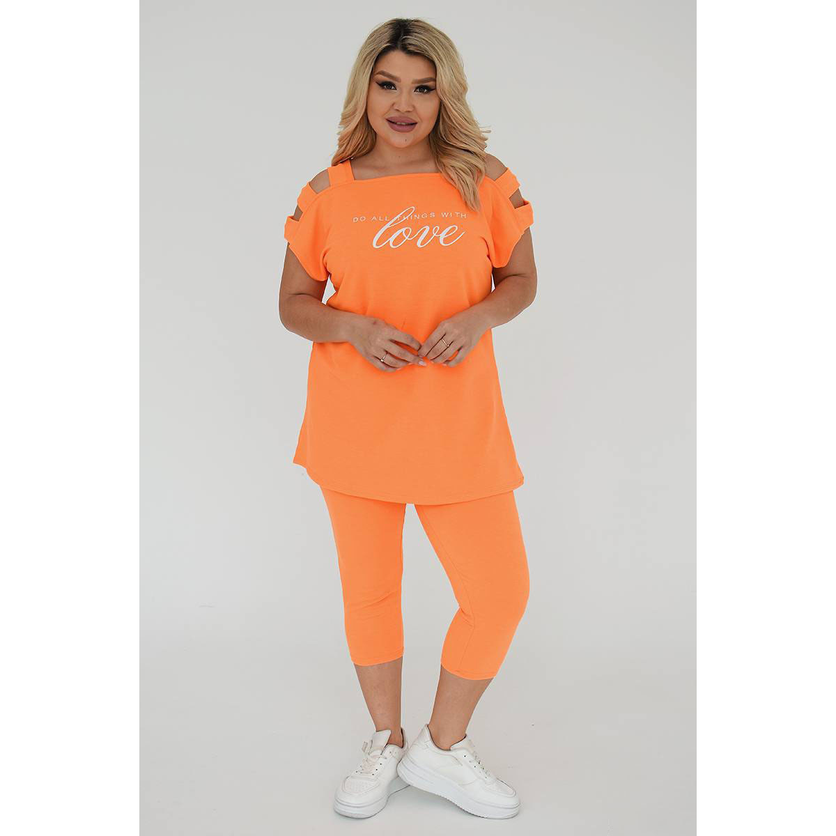 Відчуйте неперевершений комфорт і стиль з нашим жіночим костюмом батал з тканини двунить. Цей комплект, що включає футболку з коротким рукавом і бриджі, створений для тих, хто цінує зручність і елегантність у кожному русі.