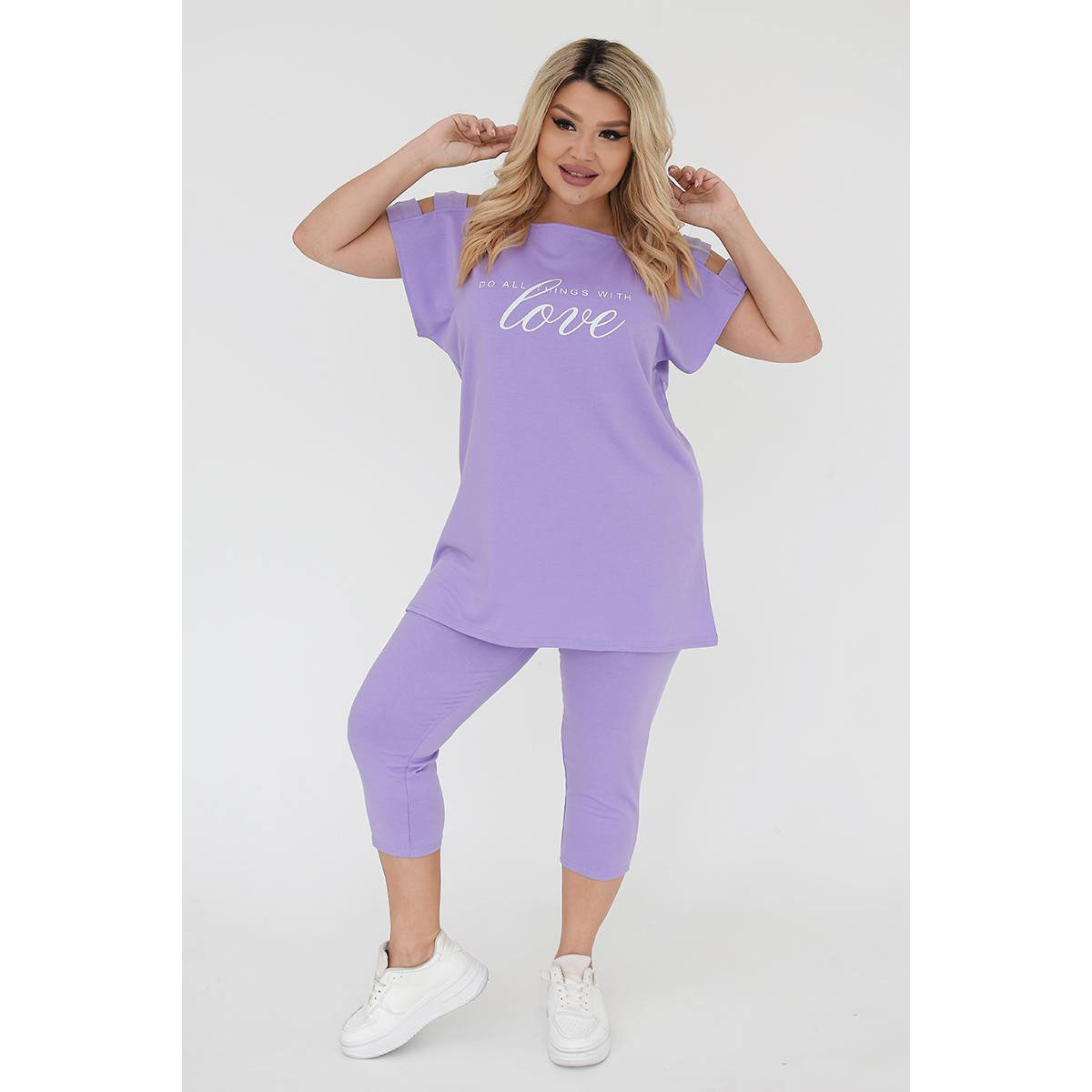 Відчуйте неперевершений комфорт і стиль з нашим жіночим костюмом батал з тканини двунить. Цей комплект, що включає футболку з коротким рукавом і бриджі, створений для тих, хто цінує зручність і елегантність у кожному русі.