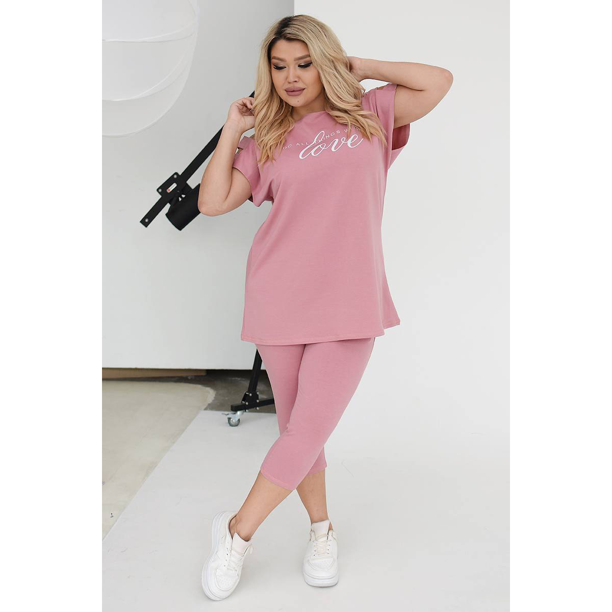 Відчуйте неперевершений комфорт і стиль з нашим жіночим костюмом батал з тканини двунить. Цей комплект, що включає футболку з коротким рукавом і бриджі, створений для тих, хто цінує зручність і елегантність у кожному русі.