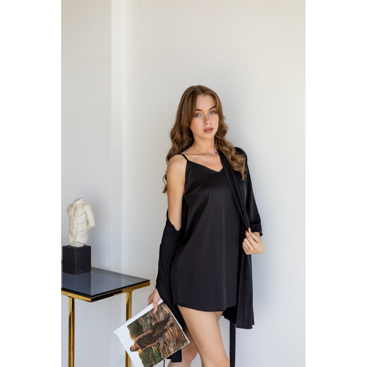 Пориньте в розкіш і комфорт з нашим жіночим комплектом з халата і нічної сорочки з тканини шовк Армані. Цей вишуканий комплект створений для тих, хто цінує елегантність і ніжність у кожній деталі. Комплект виконаний з високоякісної тканини шовк Армані, яка славиться своєю м“якістю, блиском і неймовірним комфортом на шкірі. Сорочка з регульованими бретелями дає змогу ідеально підігнати її під ваш розмір, забезпечуючи максимальний комфорт і зручність. Стильний халат на запах із поясом додає вашому образу витонченості та елегантності. Він легко одягається і фіксується на талії, створюючи вишуканий силует. Додайте до свого гардеробу нотки розкоші та комфорту з нашим жіночим комплектом із халата та нічної сорочки з тканини шовк Армані. Цей вишуканий комплект, що включає сорочку на регульованих бретелях і халат на запах з поясом, стане ідеальним вибором для тих, хто цінує елегантність і ніжність у кожній деталі.