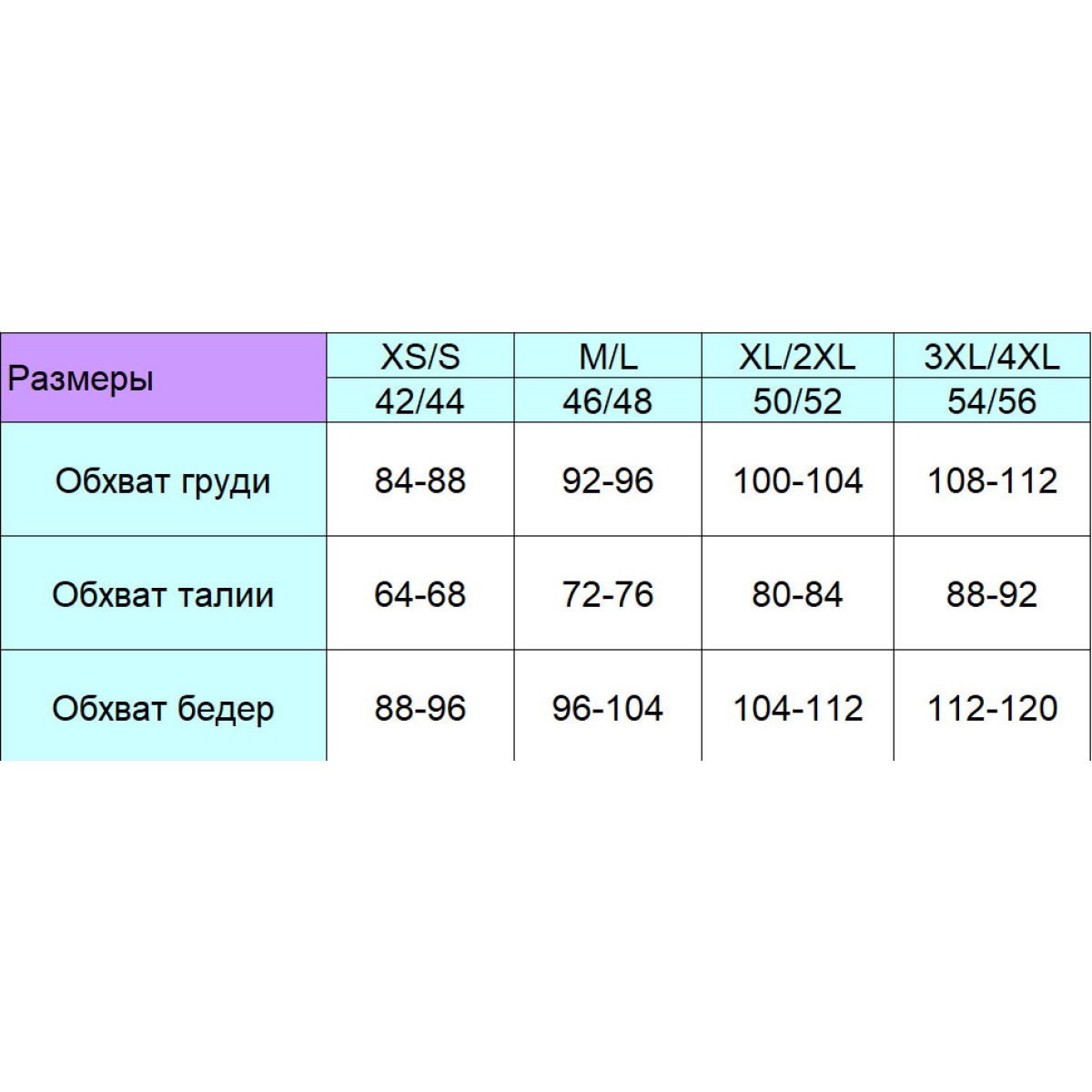 Розміри: XS/S, M/L, XL/2XL, 3XL/4XL — підходить жінкам з різним типом фігури