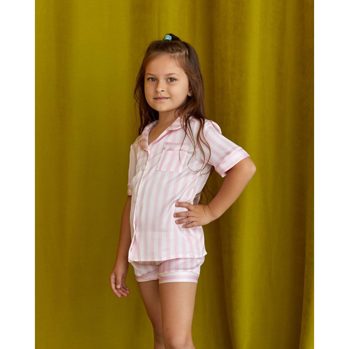 Дитяча піжамка із сатину шорти з сорочкою, Світло-рожева смужка, р.154-158