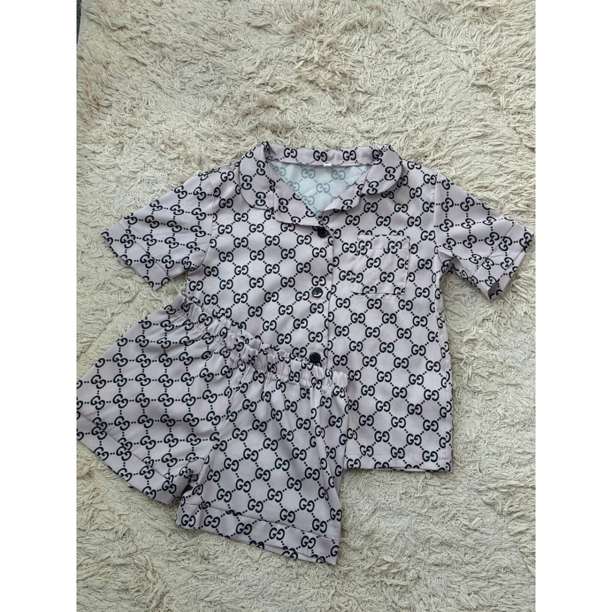 Дитяча піжамка із сатину шорти з сорочкою, Пудра р.154-158