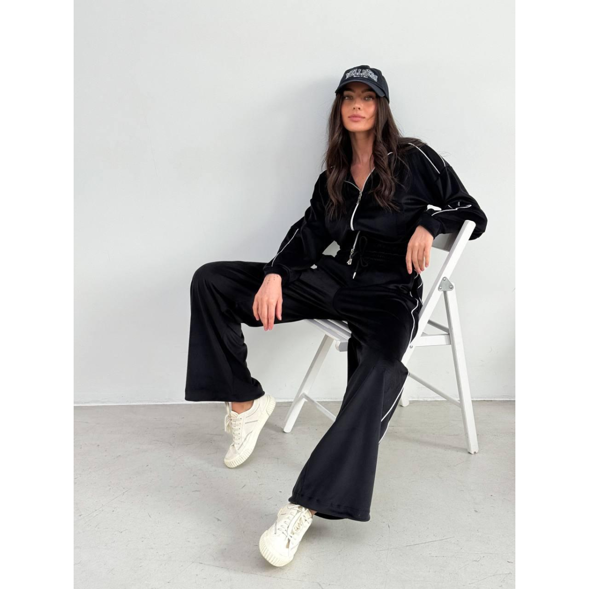 Велюровий костюм жіночий із широкими штанами, Чорний 42/46