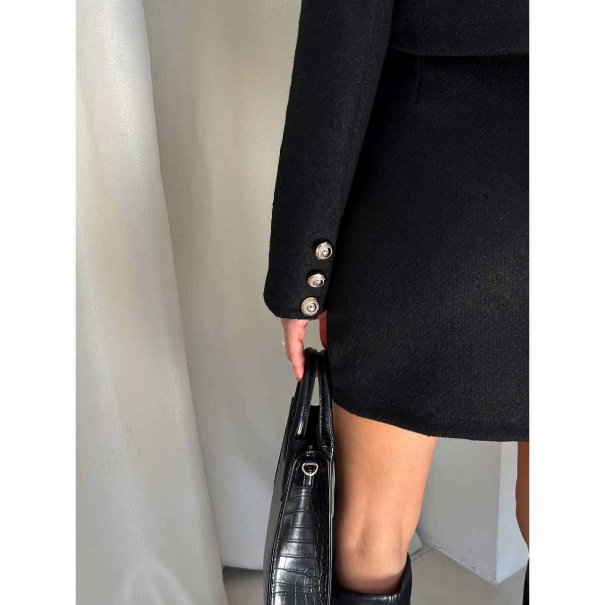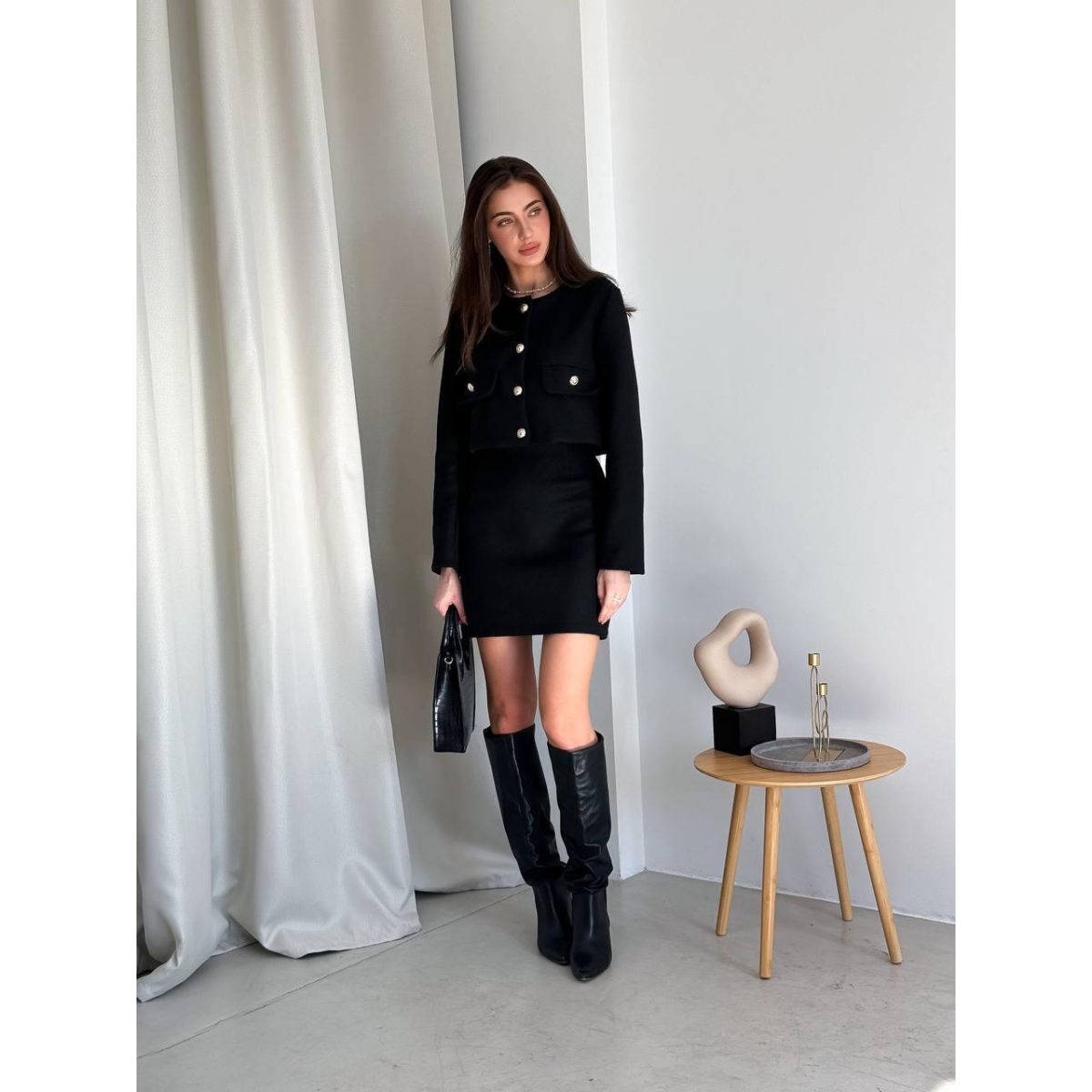 Костюм жіночий зі спідницею твідовий, Чорний, 48/52