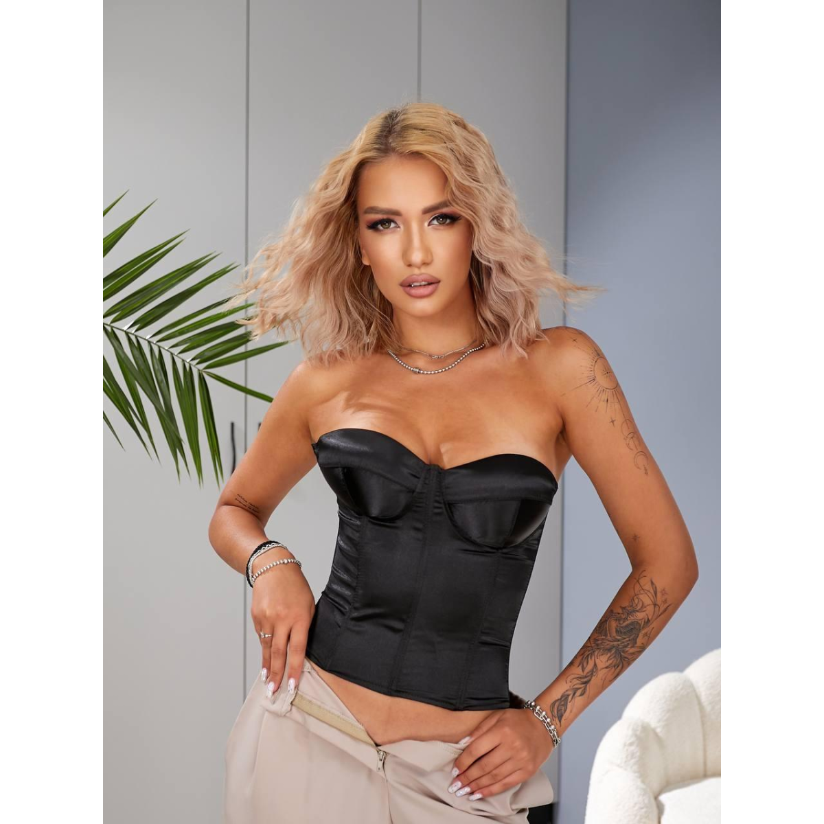 Корсет-топ жіночий шовковий, Чорний, M