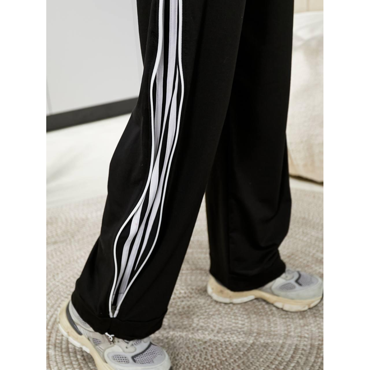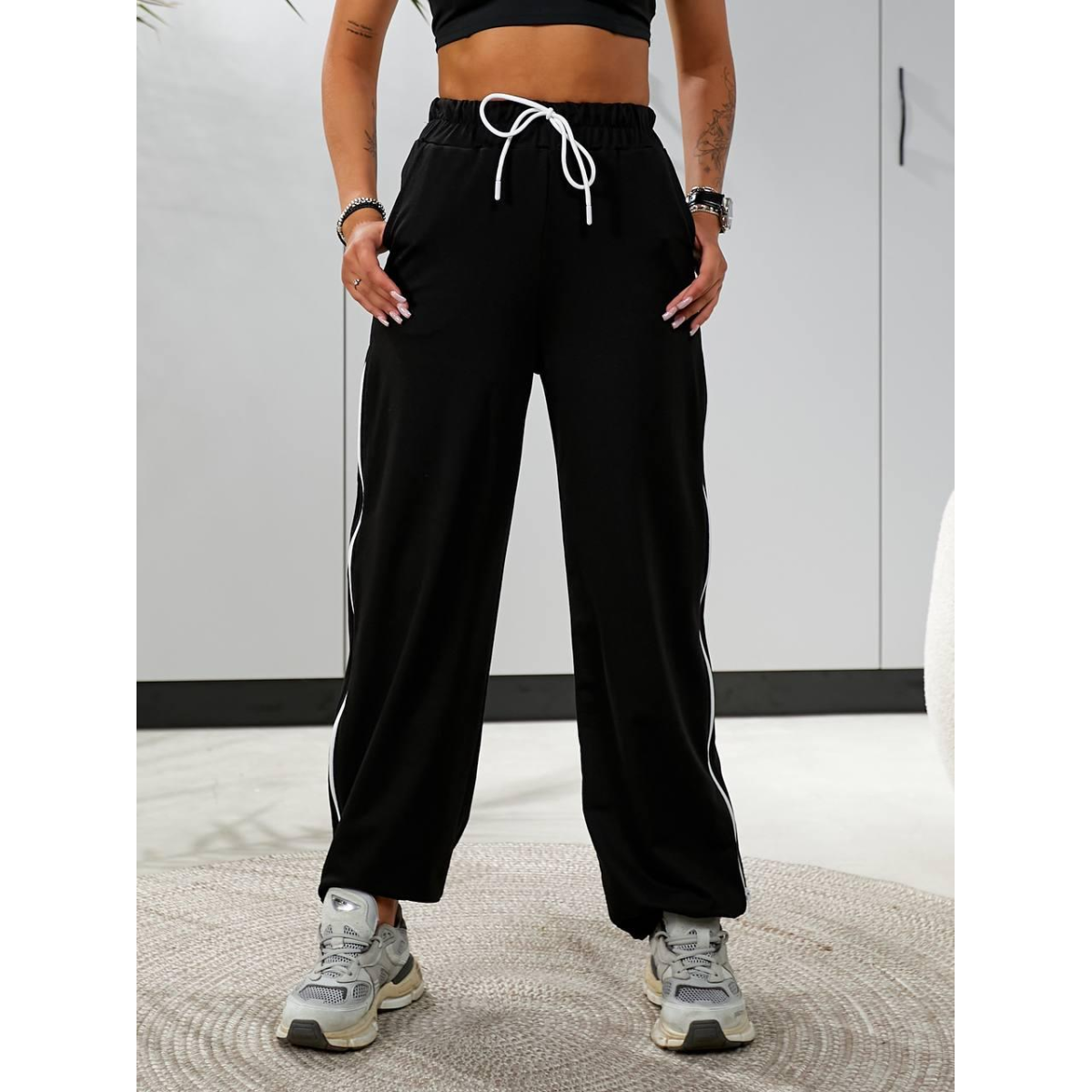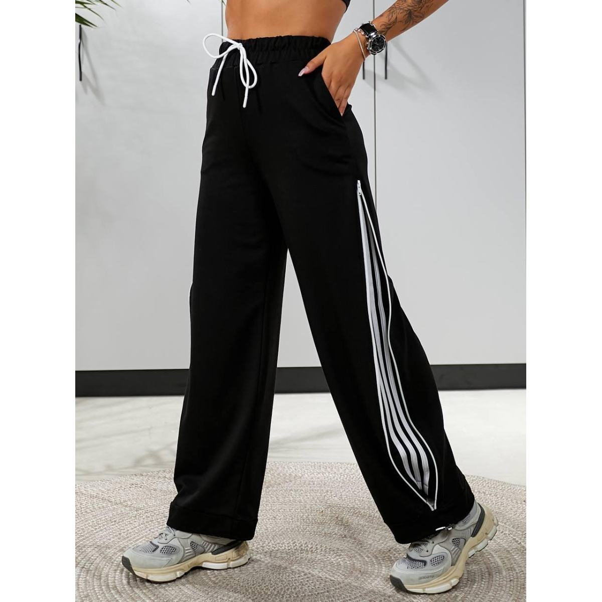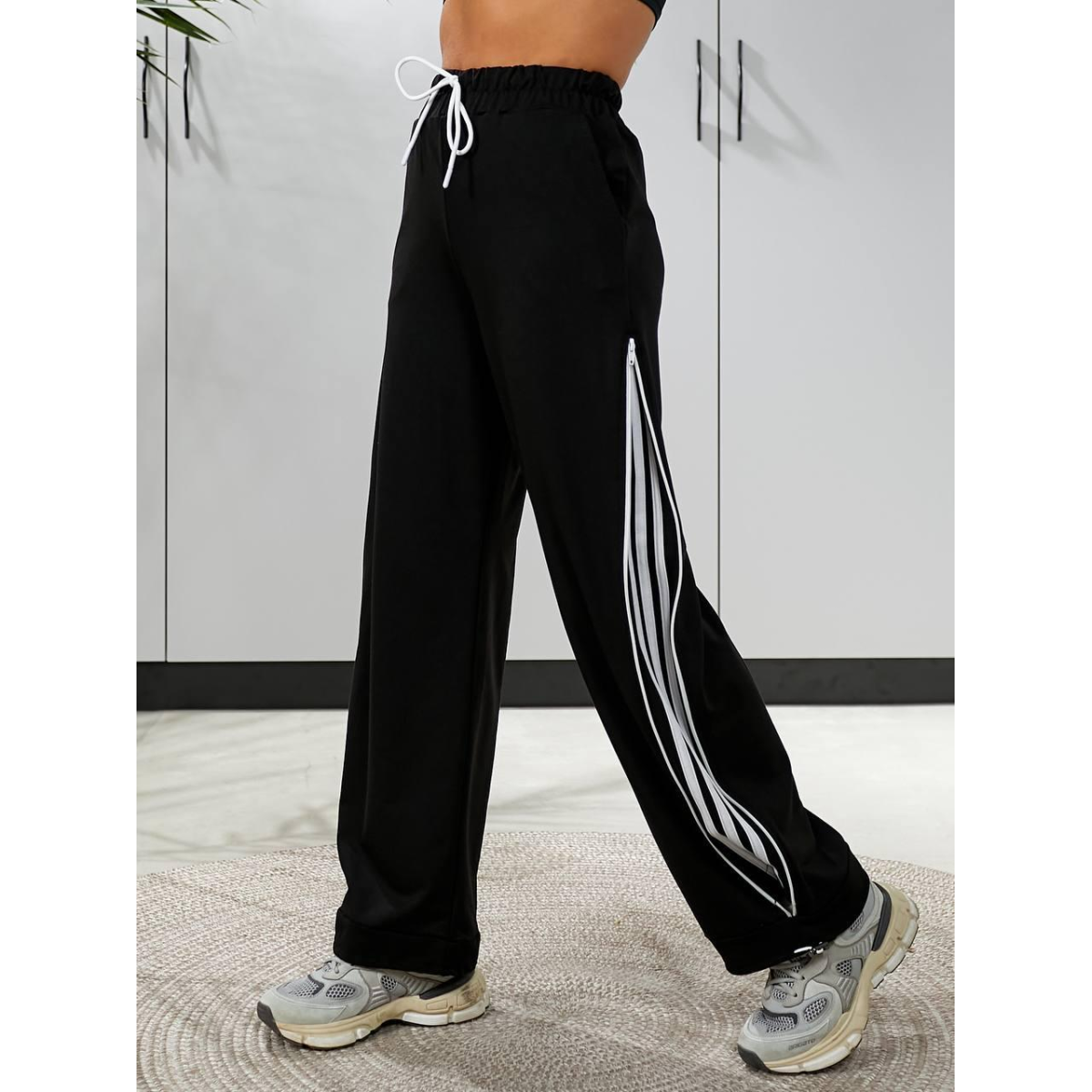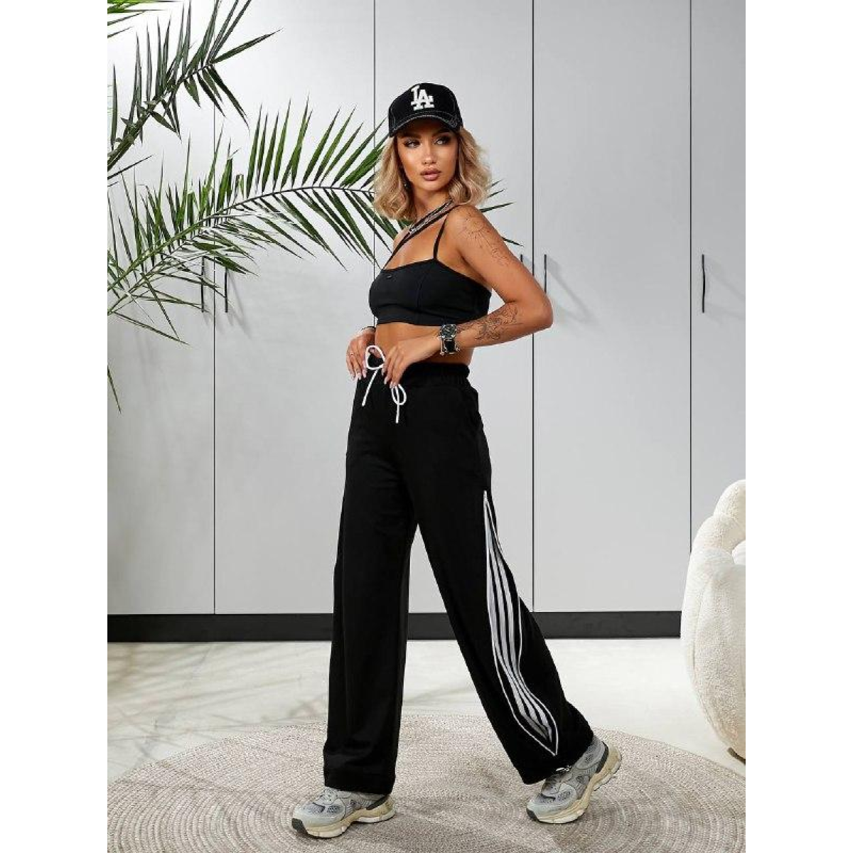 Штани широкі жіночі трикотажні, Чорний, 46/48