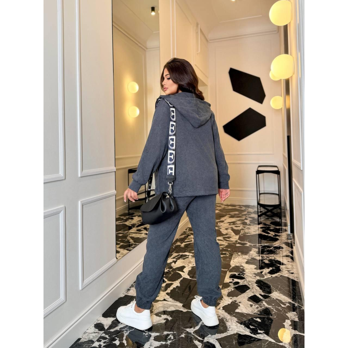 Жіночий костюм мікровельвет Сірий, 50/52