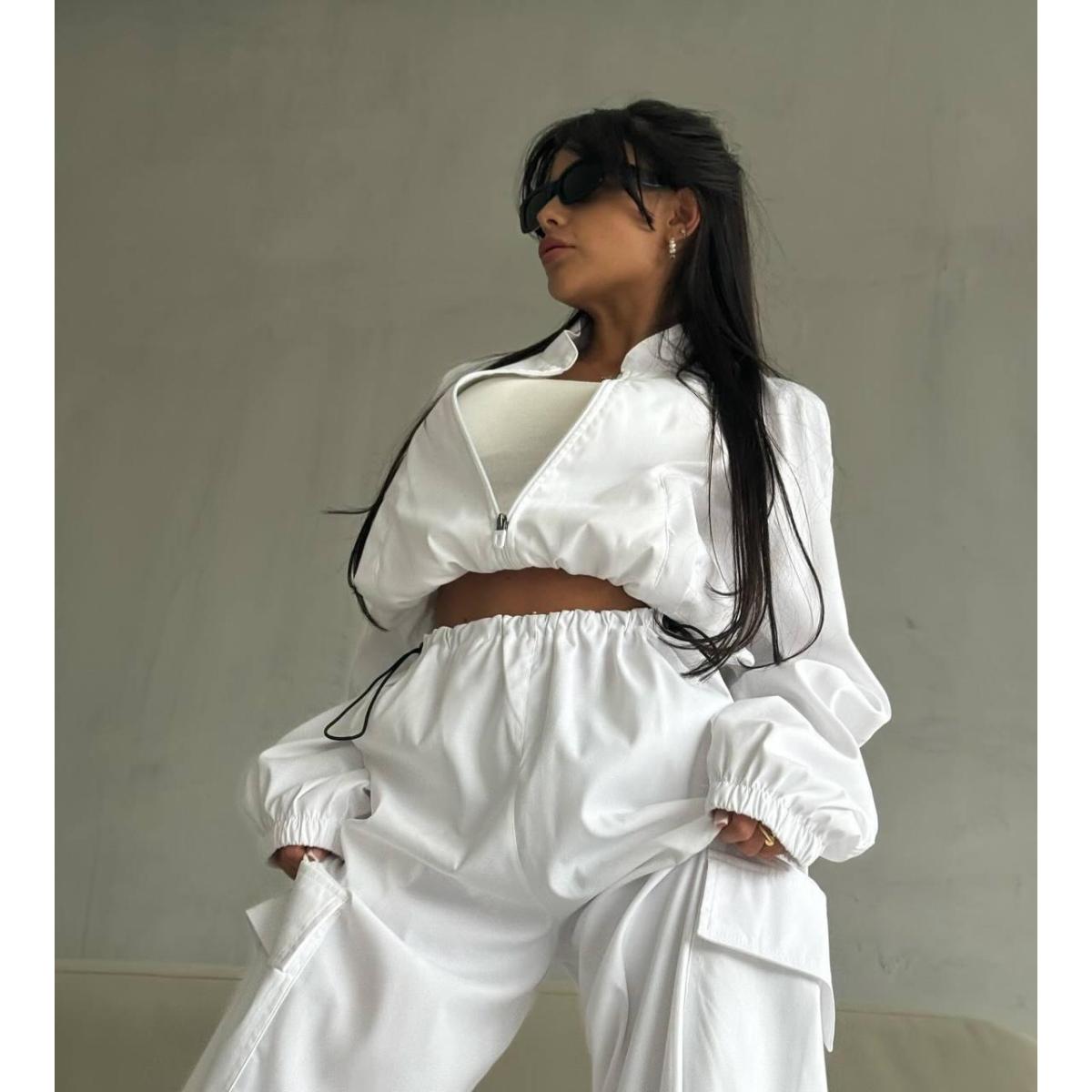 Жіночий костюм із плащової тканини Білий, 42/46