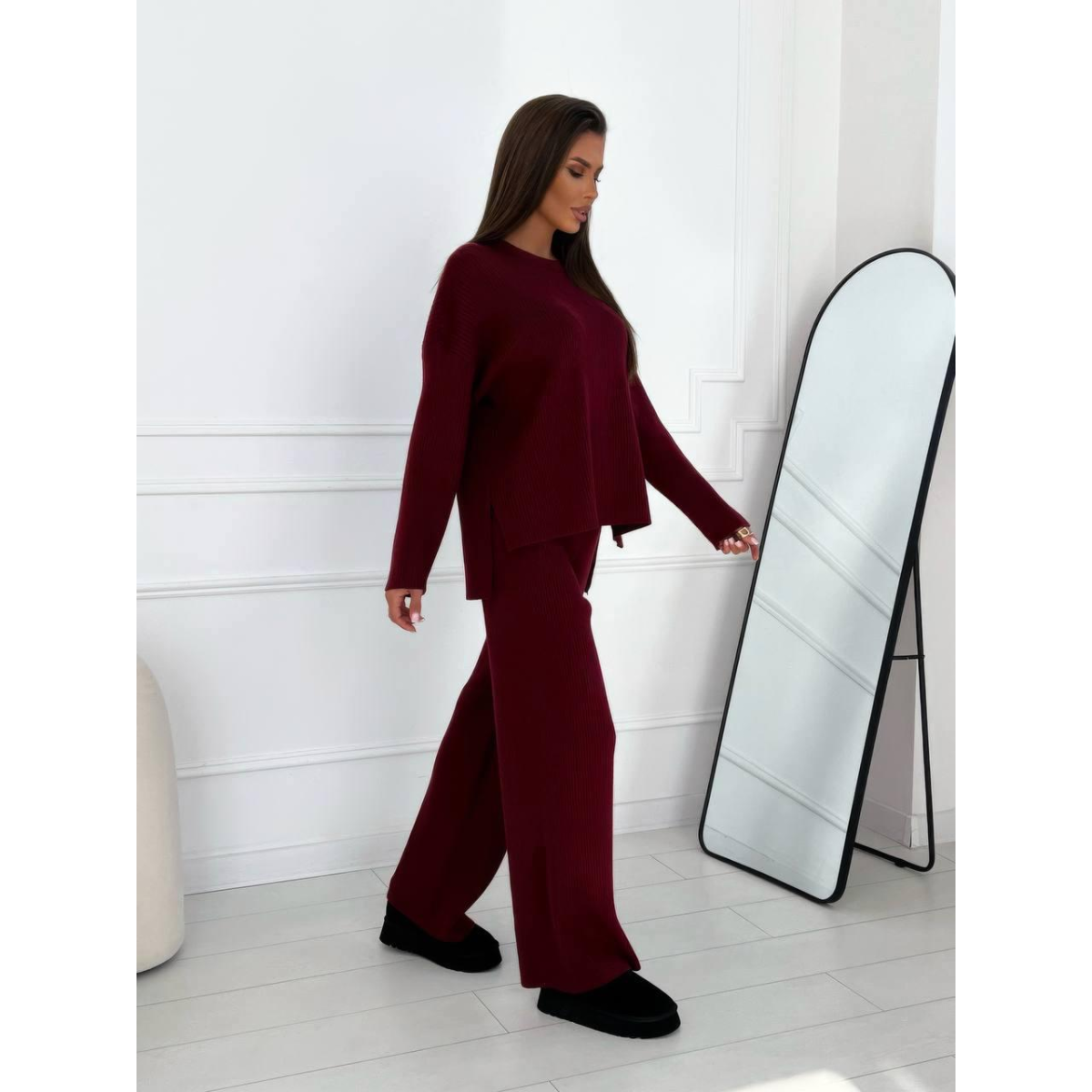 Жіночий костюм ангоровий в рубчик, Бордо 42-46