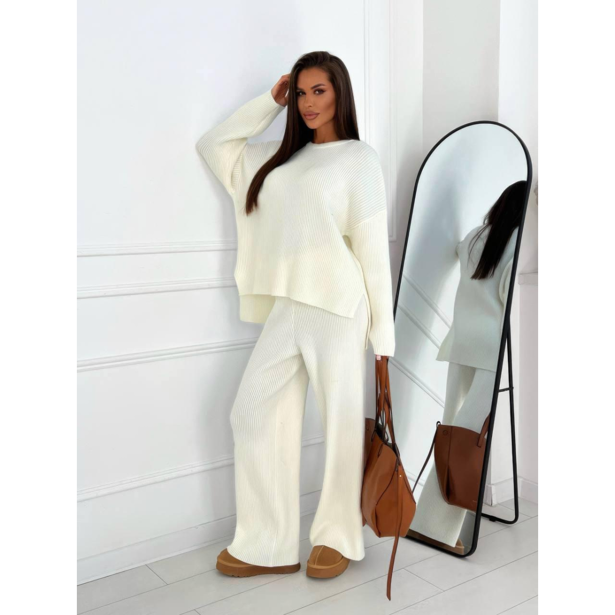 Жіночий ангоровий костюм в рубчик, Молочний 42-46