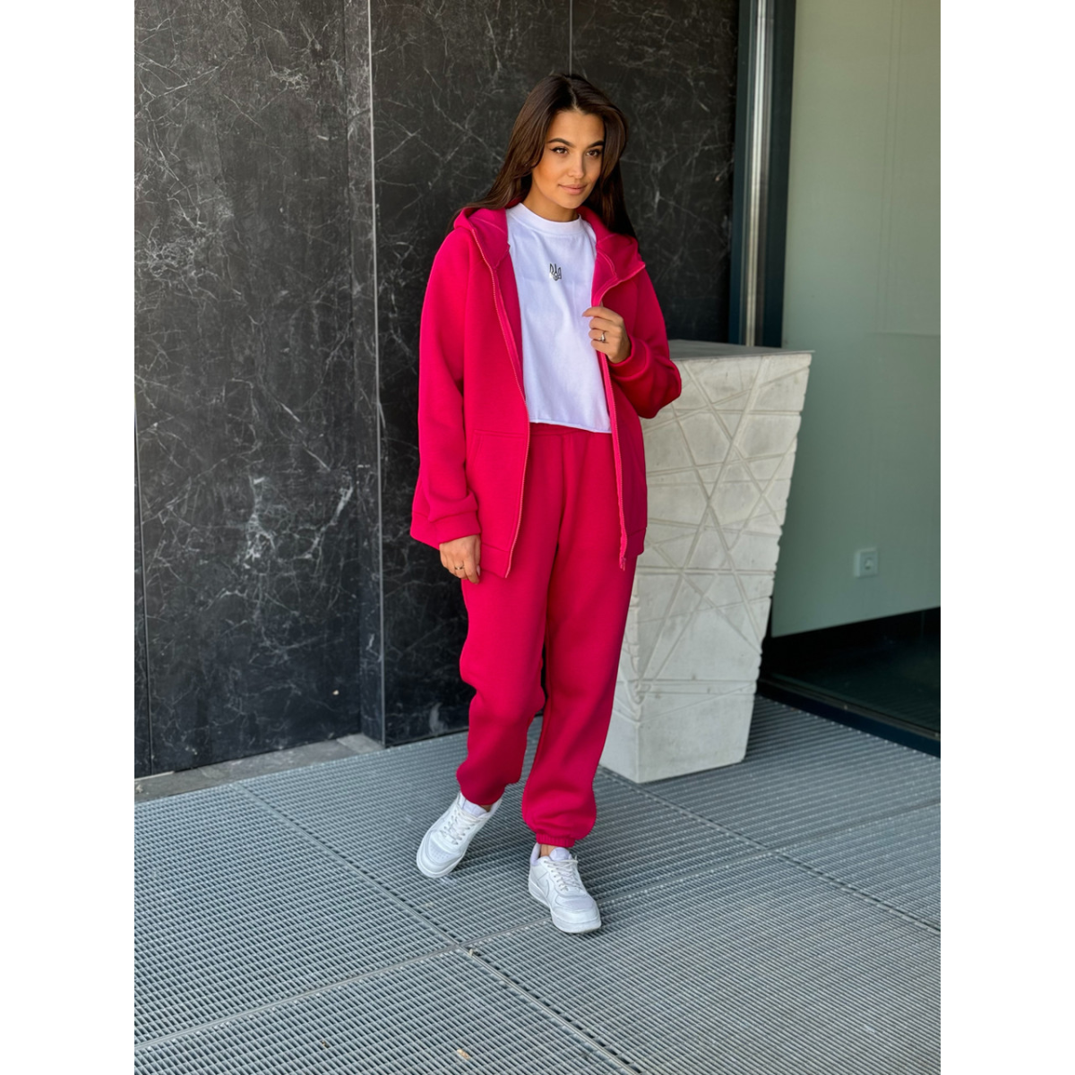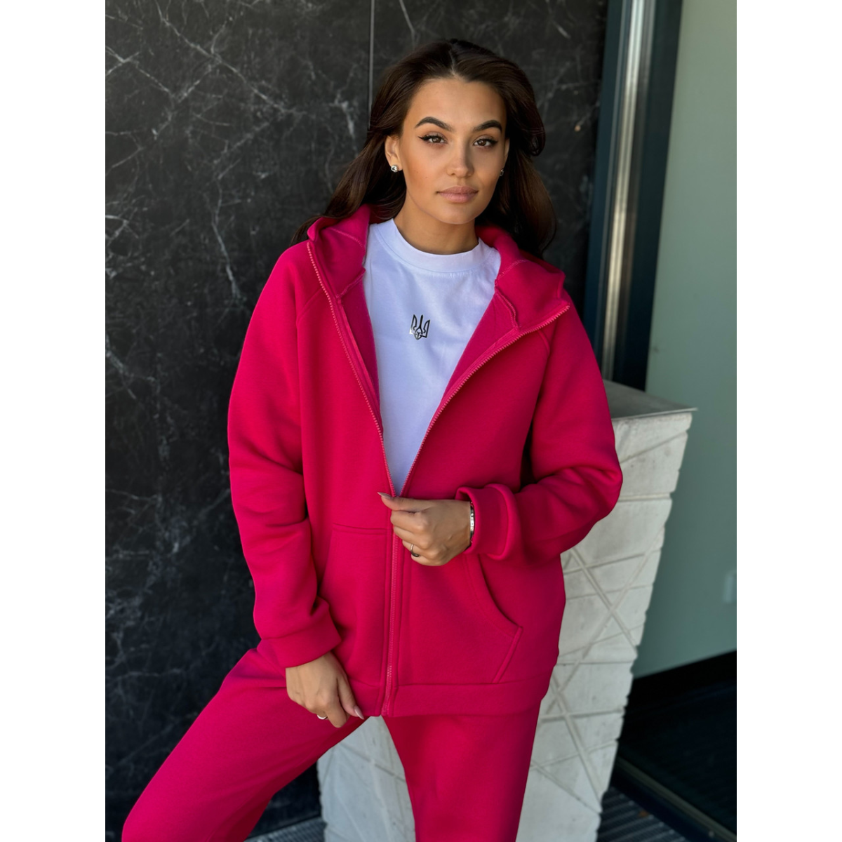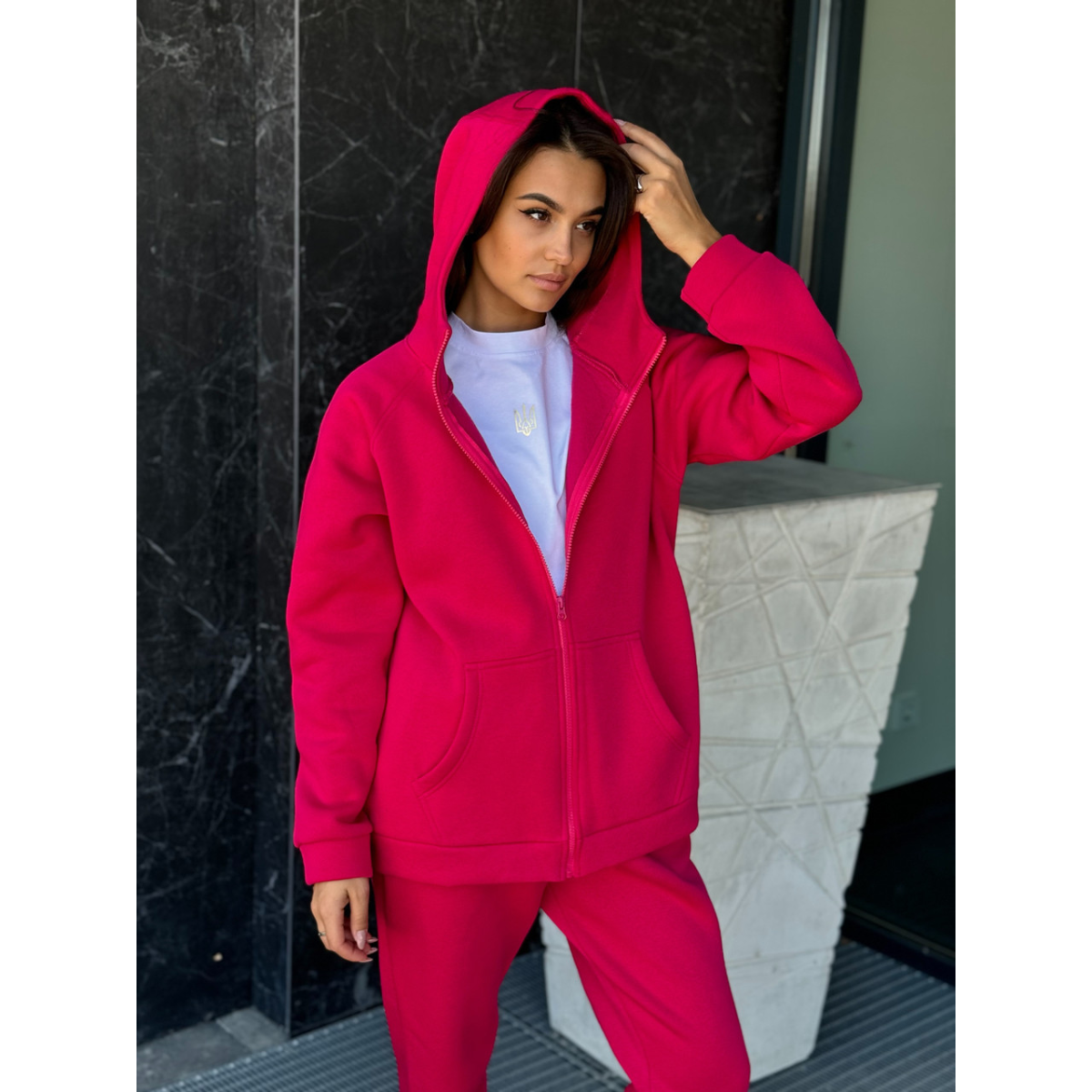 Жіночий спортивний костюм на флісі з кофтою на змійці, Малиновий, 42/44