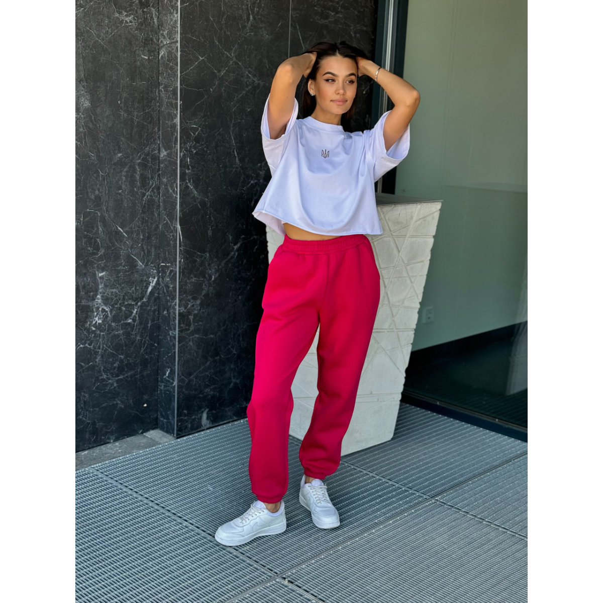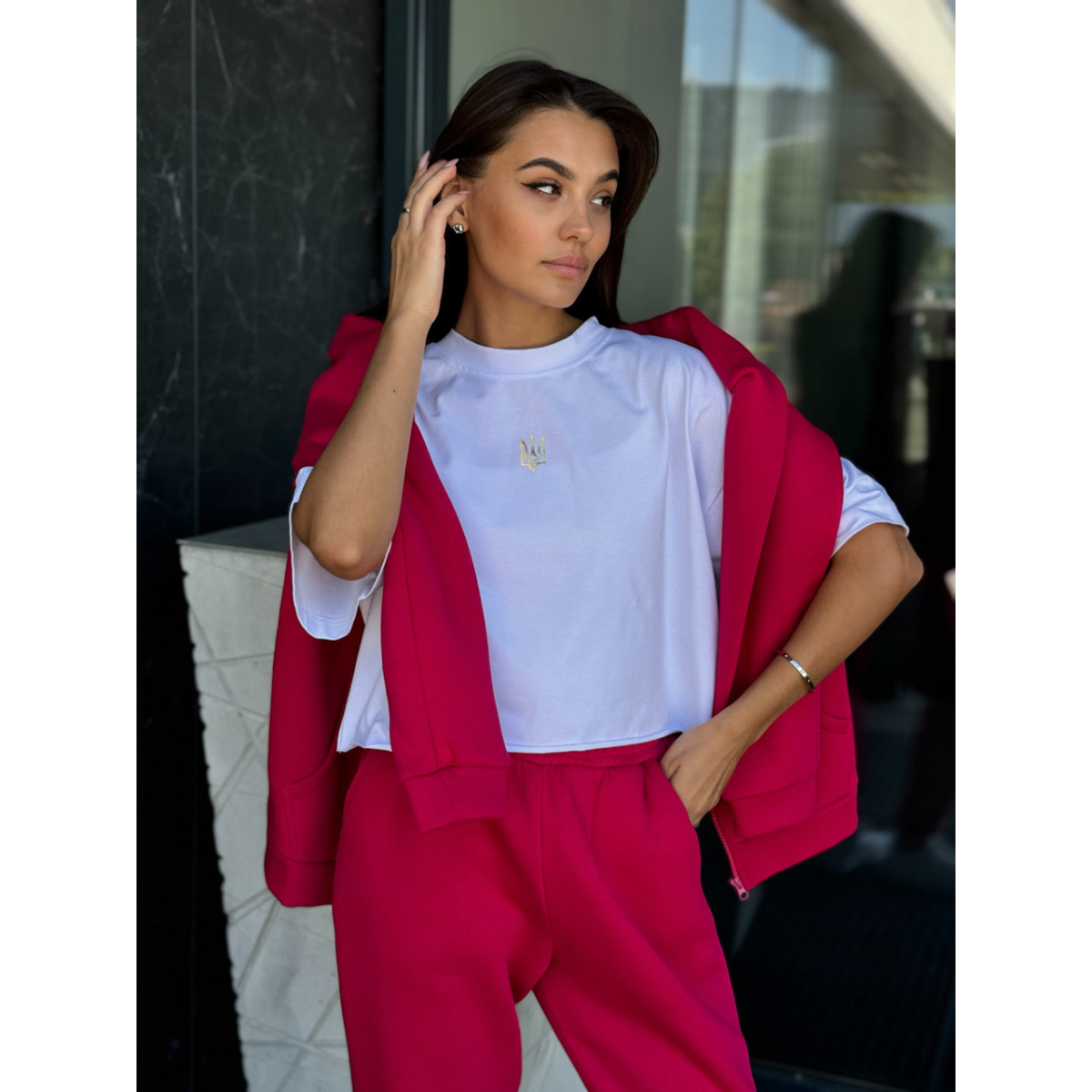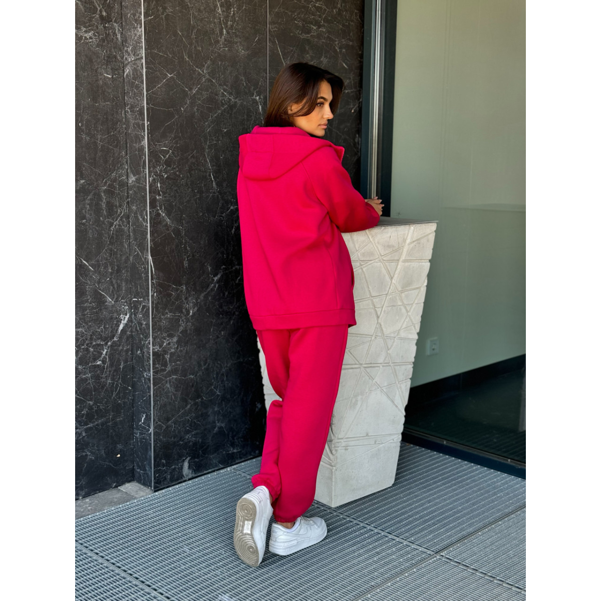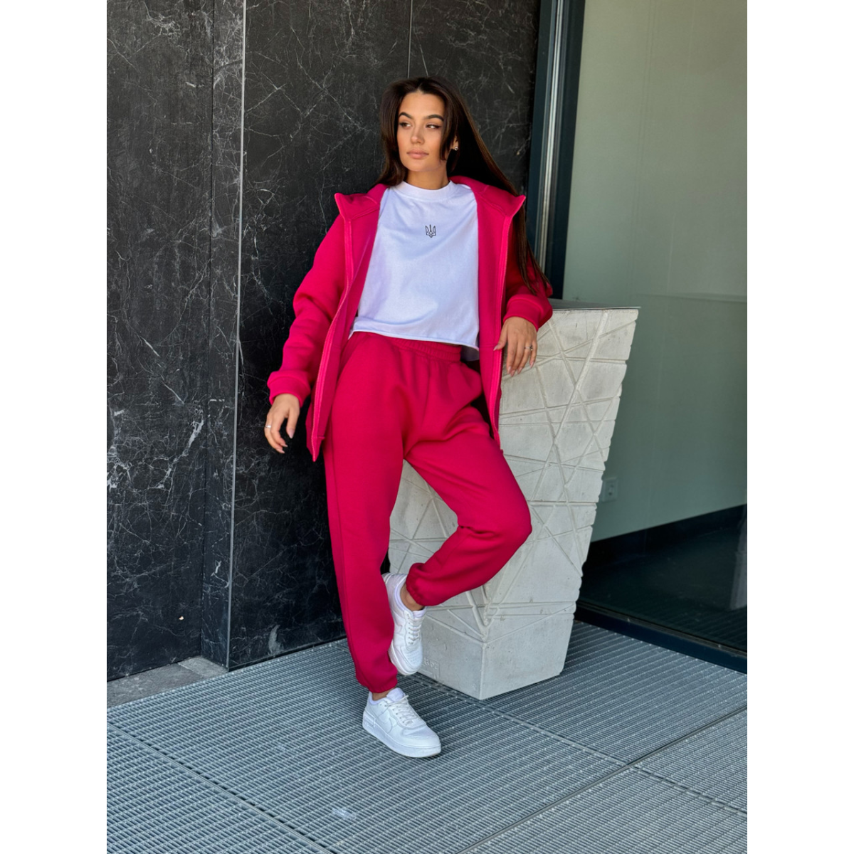 Жіночий спортивний костюм на флісі з кофтою на змійці, Малиновий, 42/44