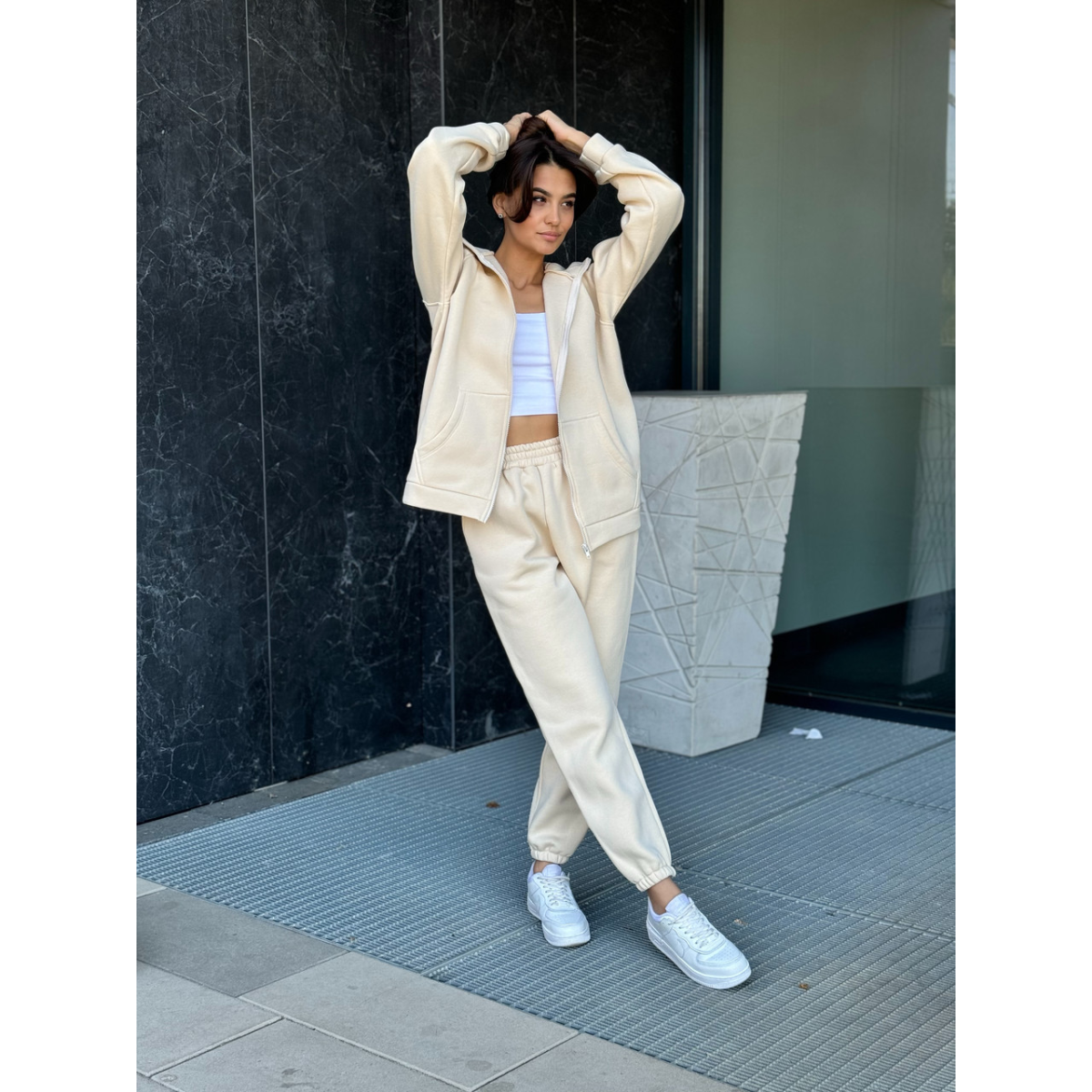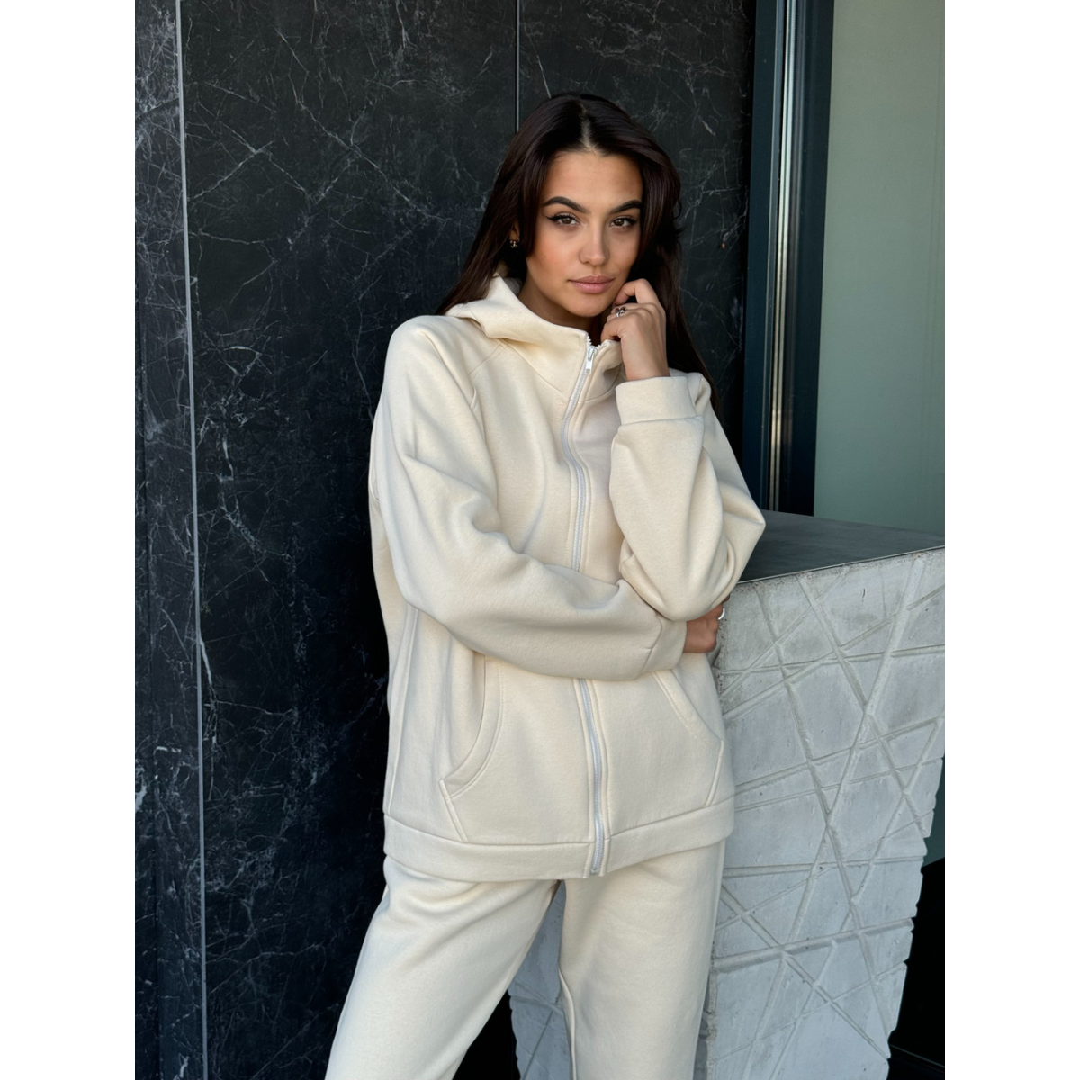 Флісовий жіночий спортивний костюм, Молочний, 46/48