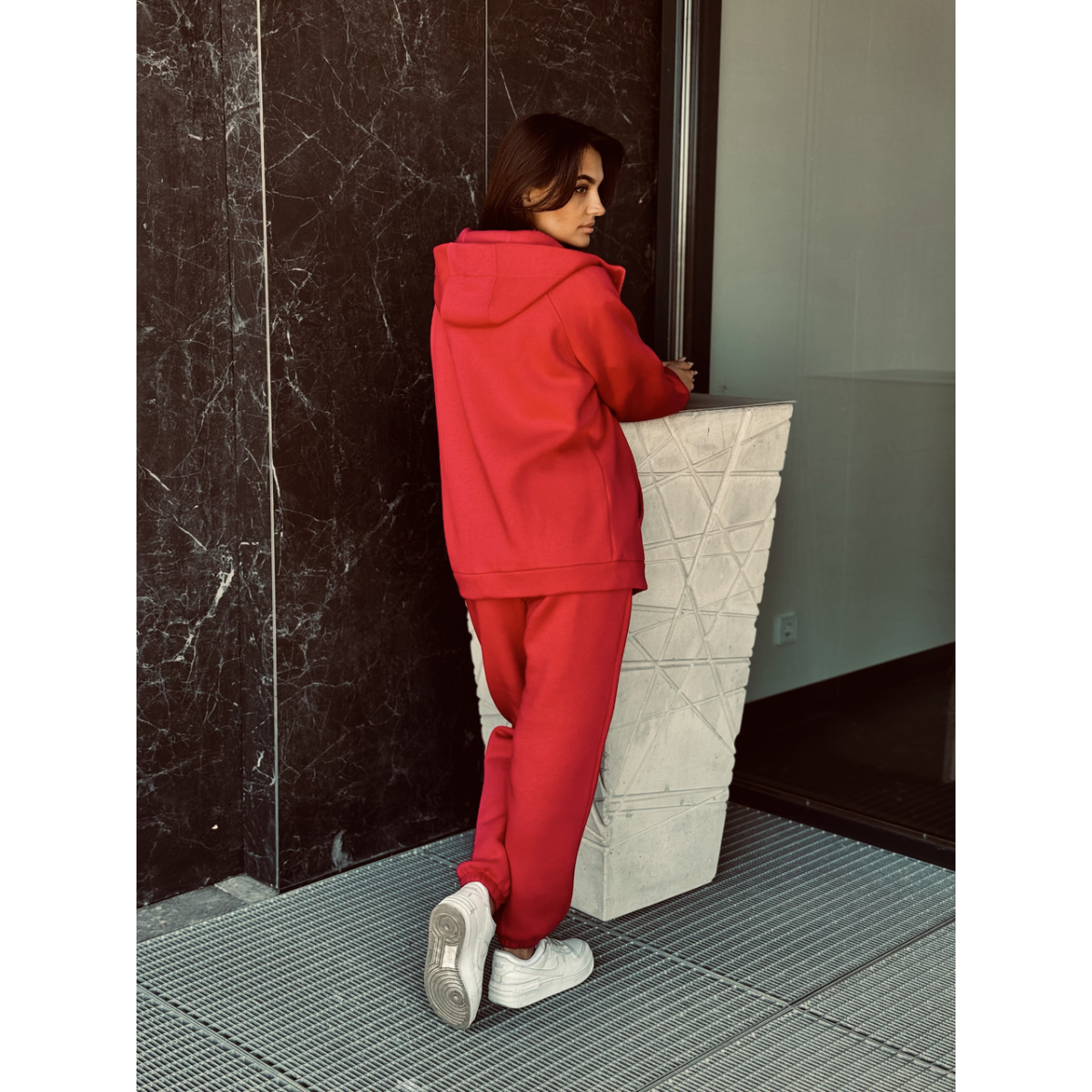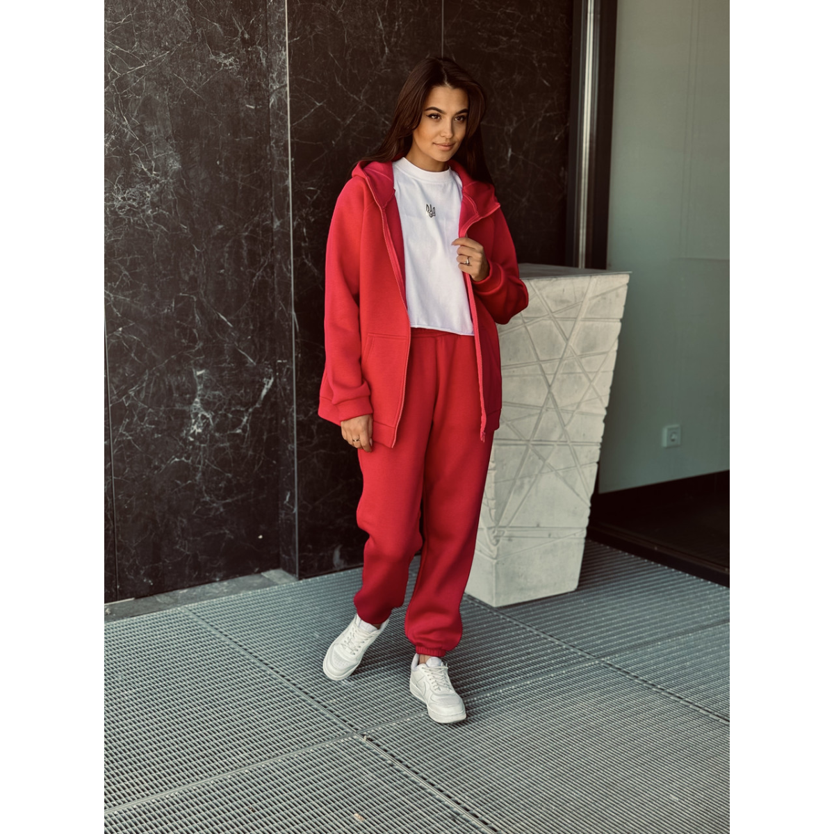 Флісовий жіночий спортивний костюм, Червоний, 46/48
