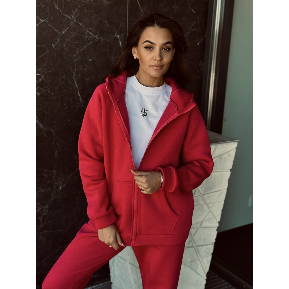Жіночий теплий костюм на флісі, Червоний, 50/52