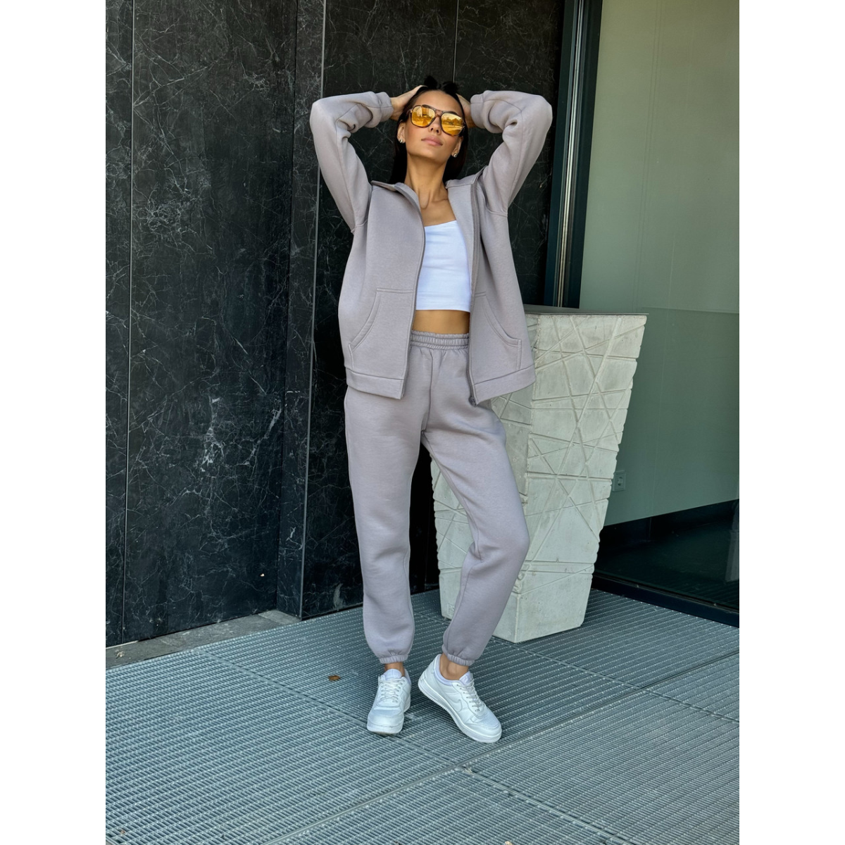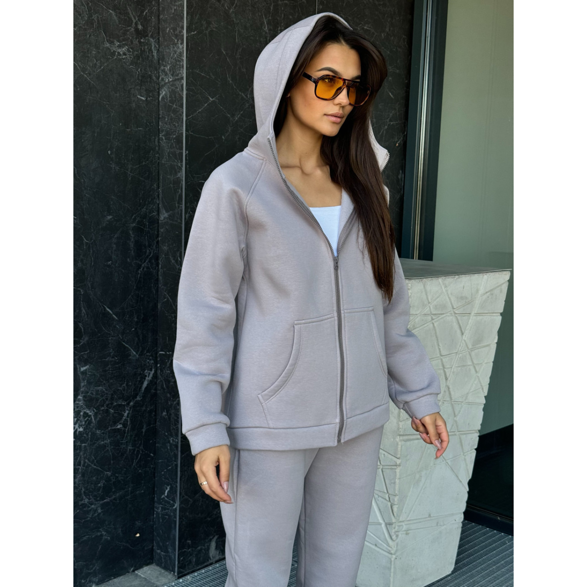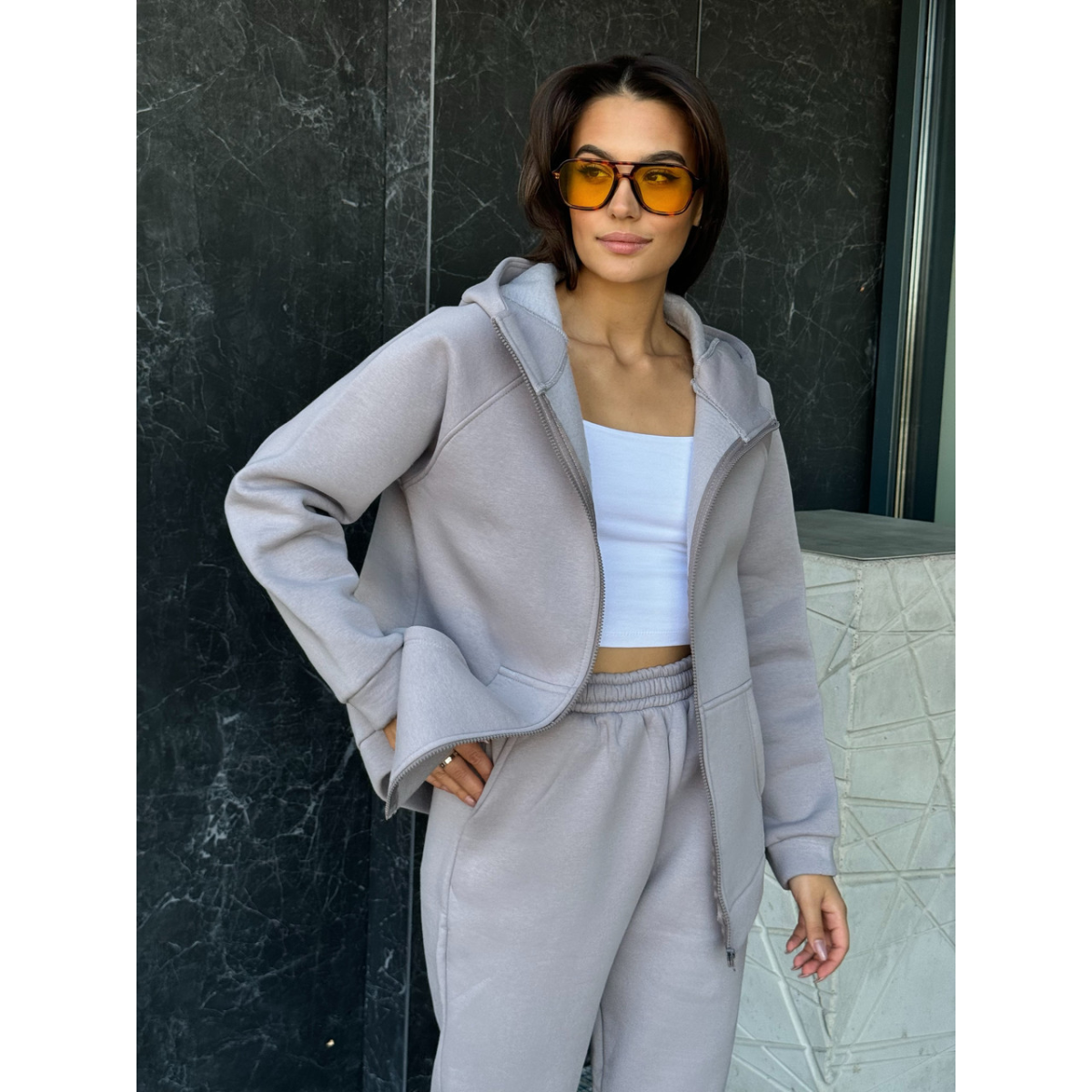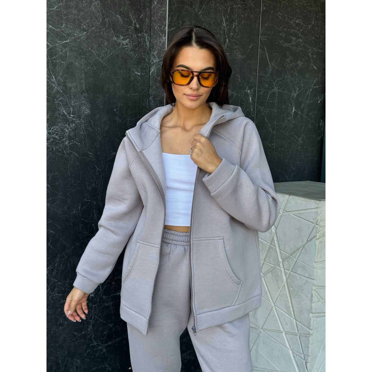 Теплий спортивний костюм жіночий на блискавці, Сірий, 50/52
