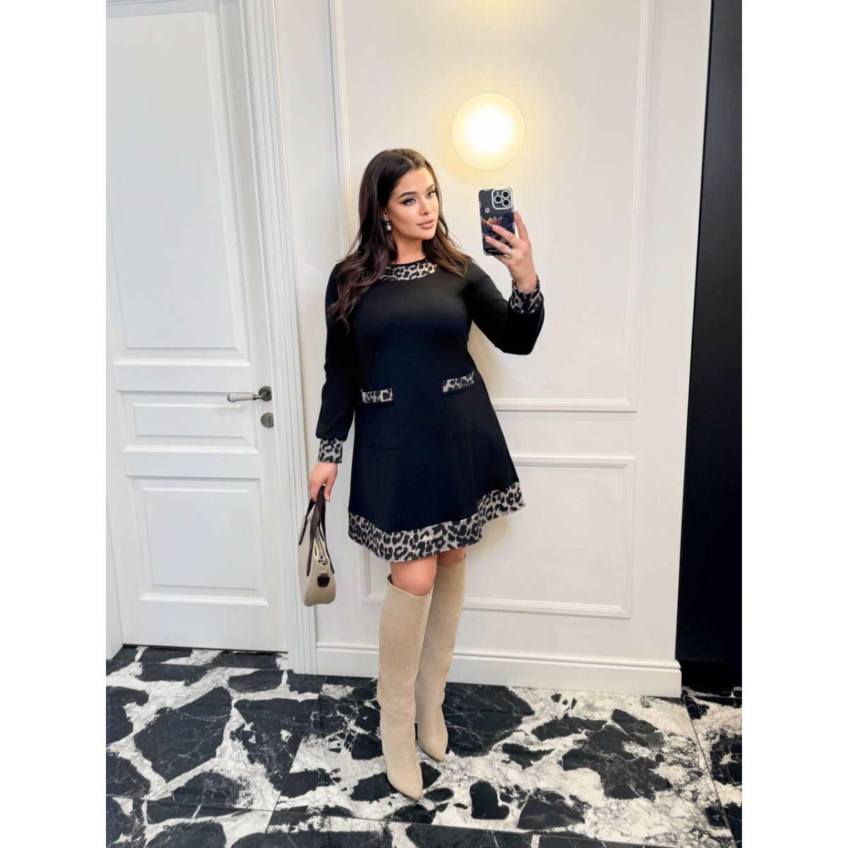 Сукня жіноча тепла, Чорний, Сірий Лео, 50/52