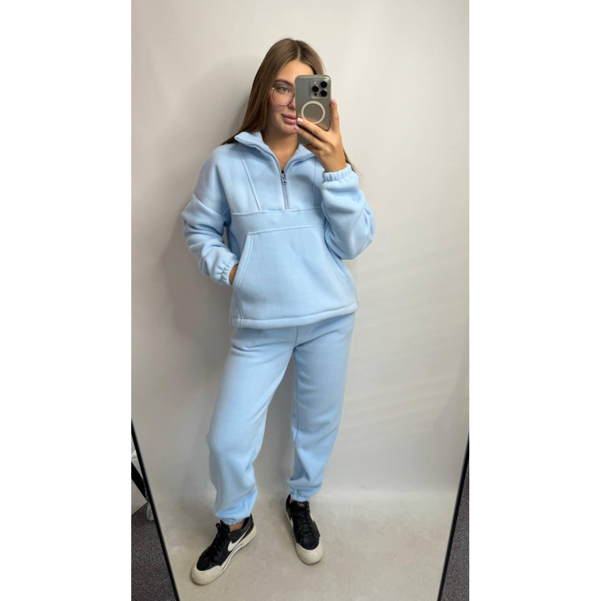 Теплий жіночий костюм TEDDY Блакитний, M-L