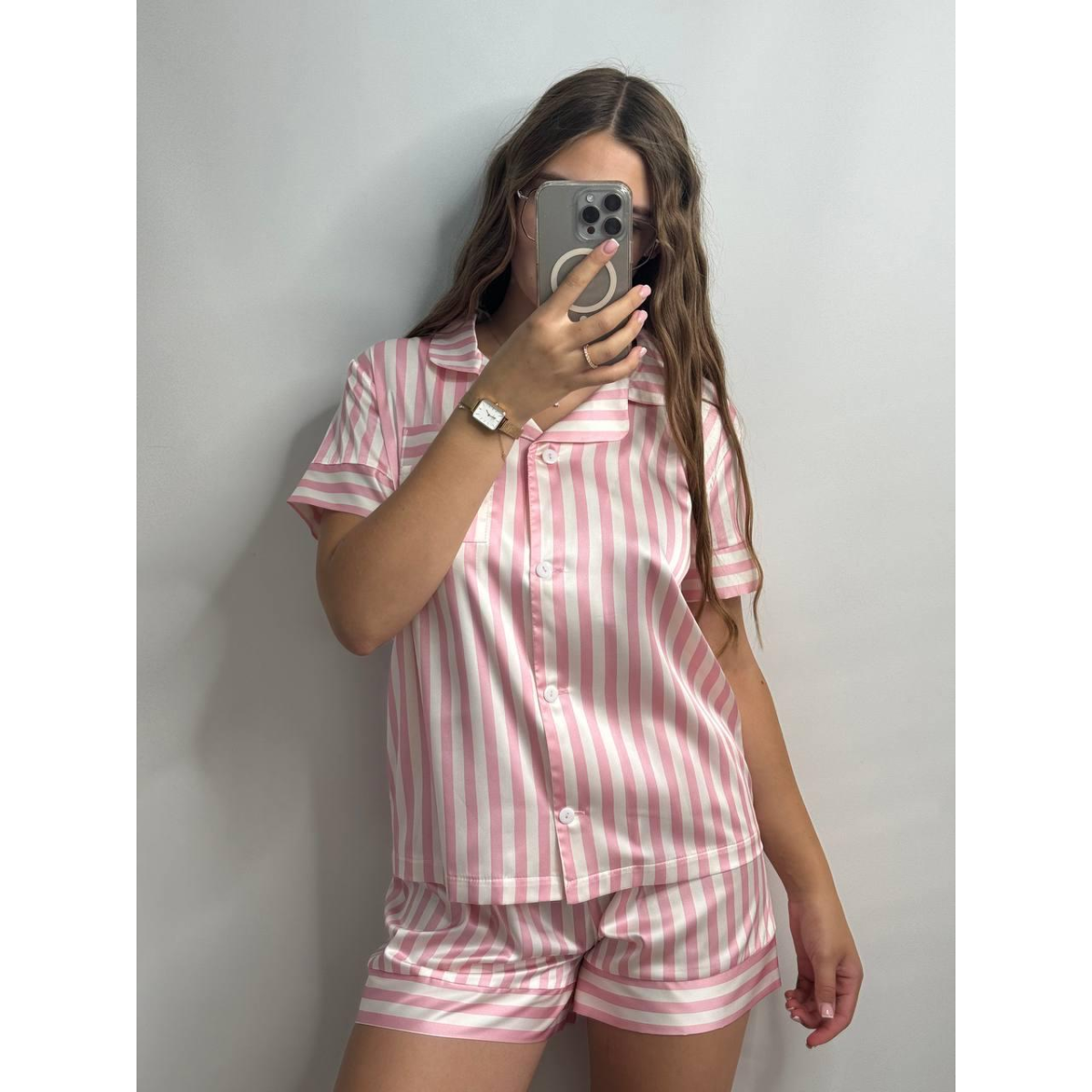 Жіноча сатинова піжама (шорти та сорочка) Елегантна і легка жіноча піжама з сатину подарує вам комфорт і вишуканий стиль. Комплект складається з шортів і сорочки на ґудзиках, що ідеально підходять для затишного сну і розслабленого відпочинку вдома. Матеріал: Ніжний сатин надає піжамі гладкості та легкого блиску, створюючи відчуття м“якості та розкоші на шкірі. Сорочка: Класичний крій із ґудзиками спереду, що додає витонченості та зручності. Шорти: Вільний фасон для максимального комфорту, на зав“язках і прошитою гумкою. Ця сатинова піжама - ідеальне поєднання стилю і комфорту для вашого нічного гардероба.