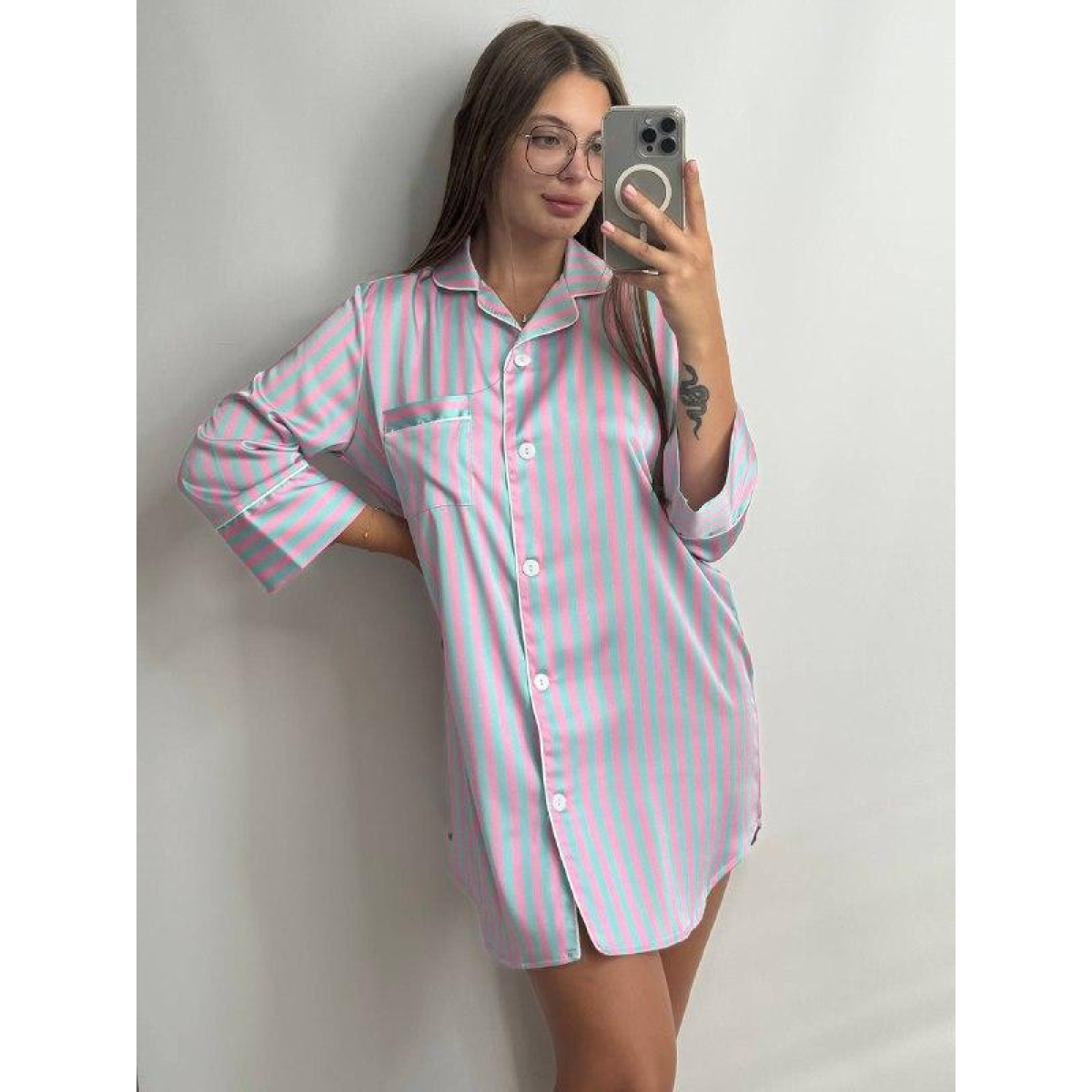 Жіноча нічна сорочка сатинова Блакитно-рожева смужка, S