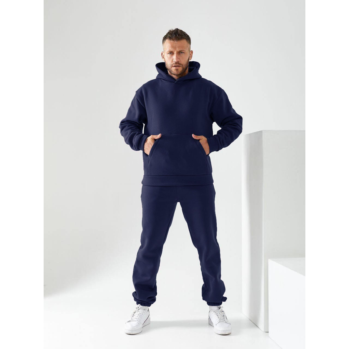 Чоловічий спортивний теплий костюм на флісі Темно-синій, 50/52