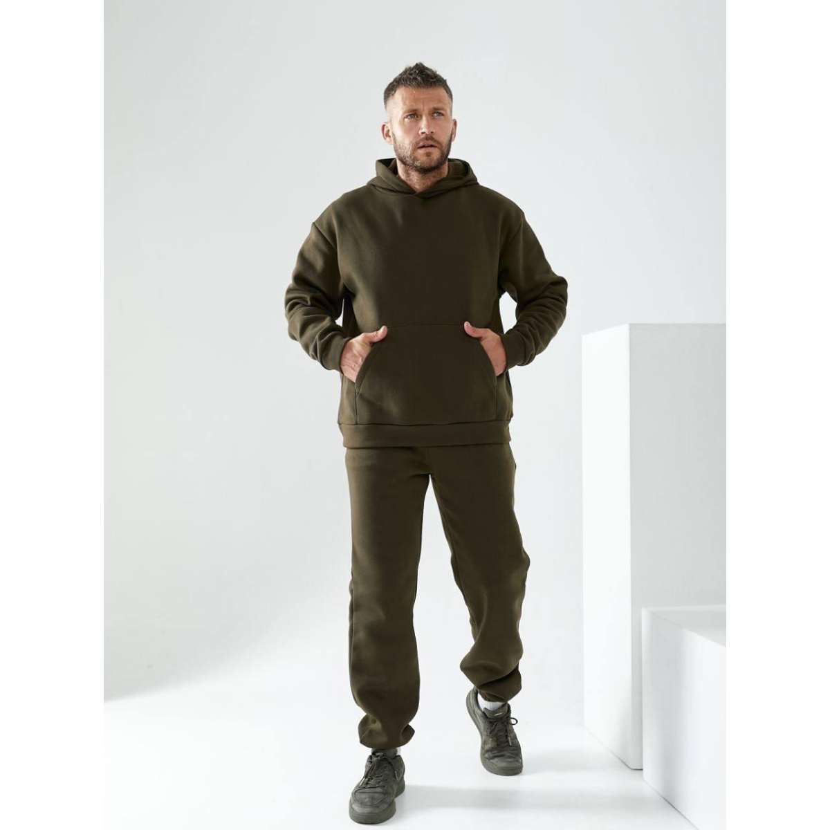Чоловічий спортивний теплий костюм на флісі Хакі, 54/56