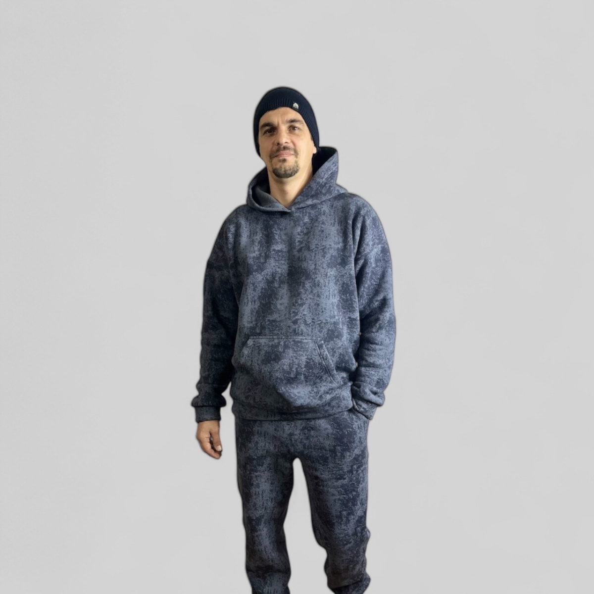 Чоловічий зимовий спортивний костюм на флісі, Сірий мармур, 46/48