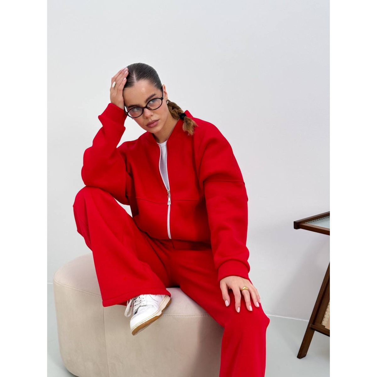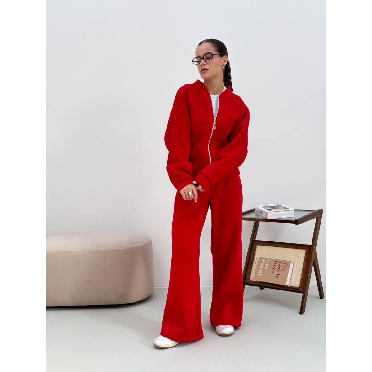 Теплий костюм на флісі жіночий з широкими штанами Червоний, 42/46