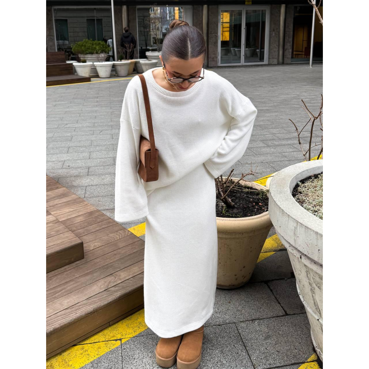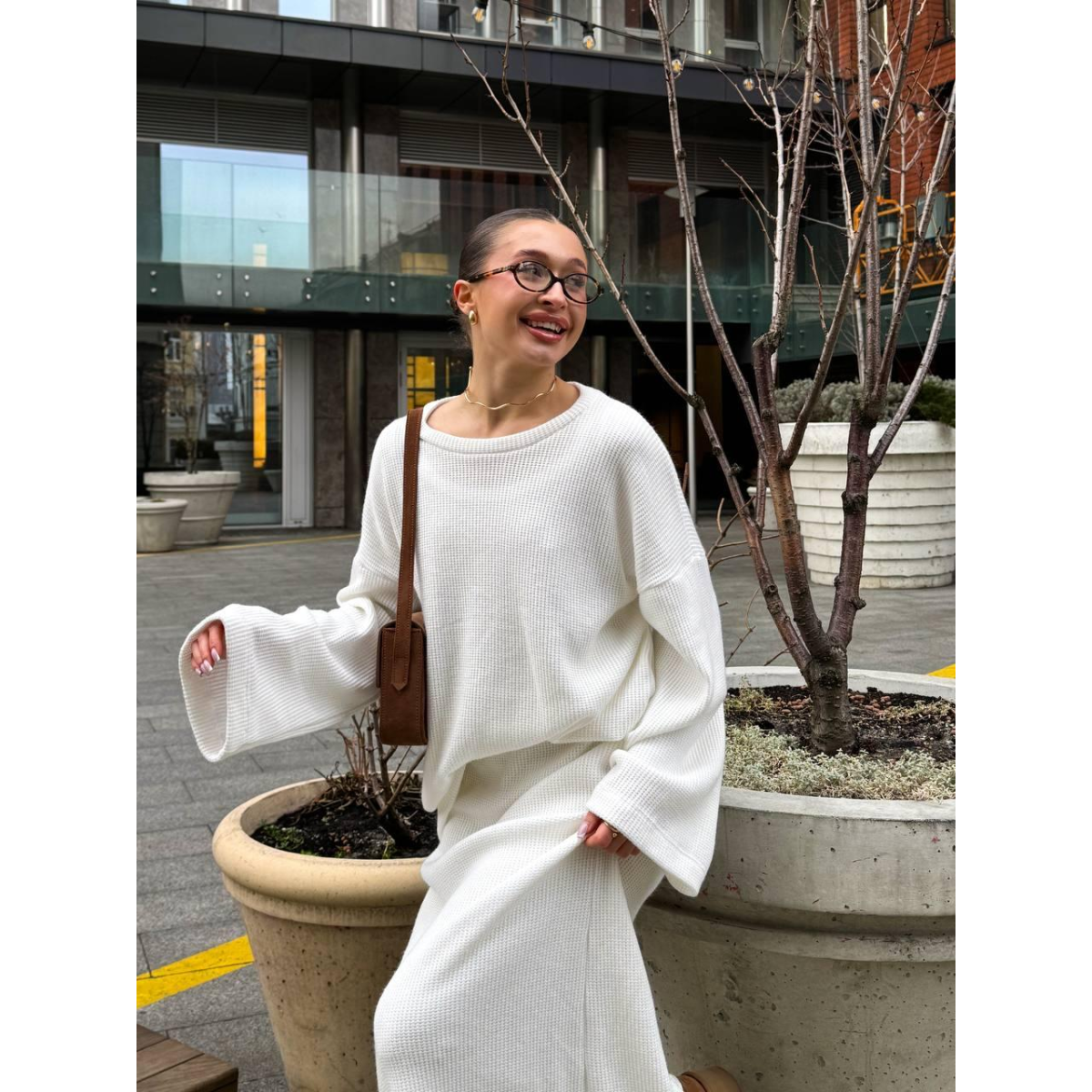 Жіночий в“язаний костюм з юбкою Молочний, 42/44