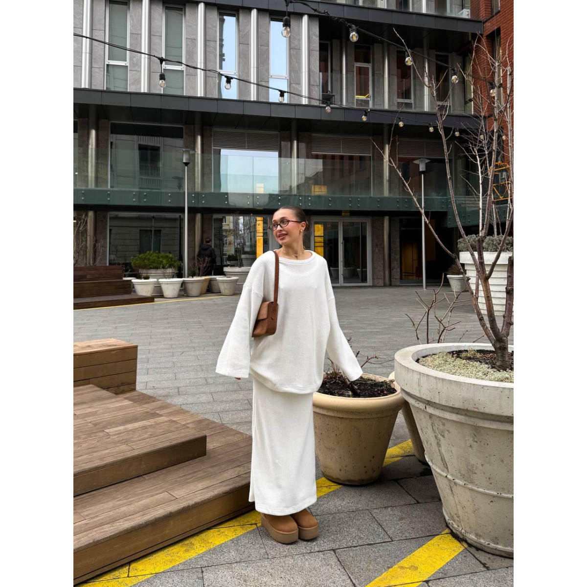 Жіночий в“язаний костюм з юбкою Молочний, 42/44