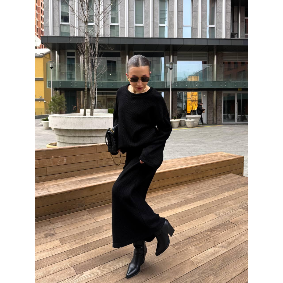 Жіночий в“язаний костюм з юбкою Чорний, 42/44