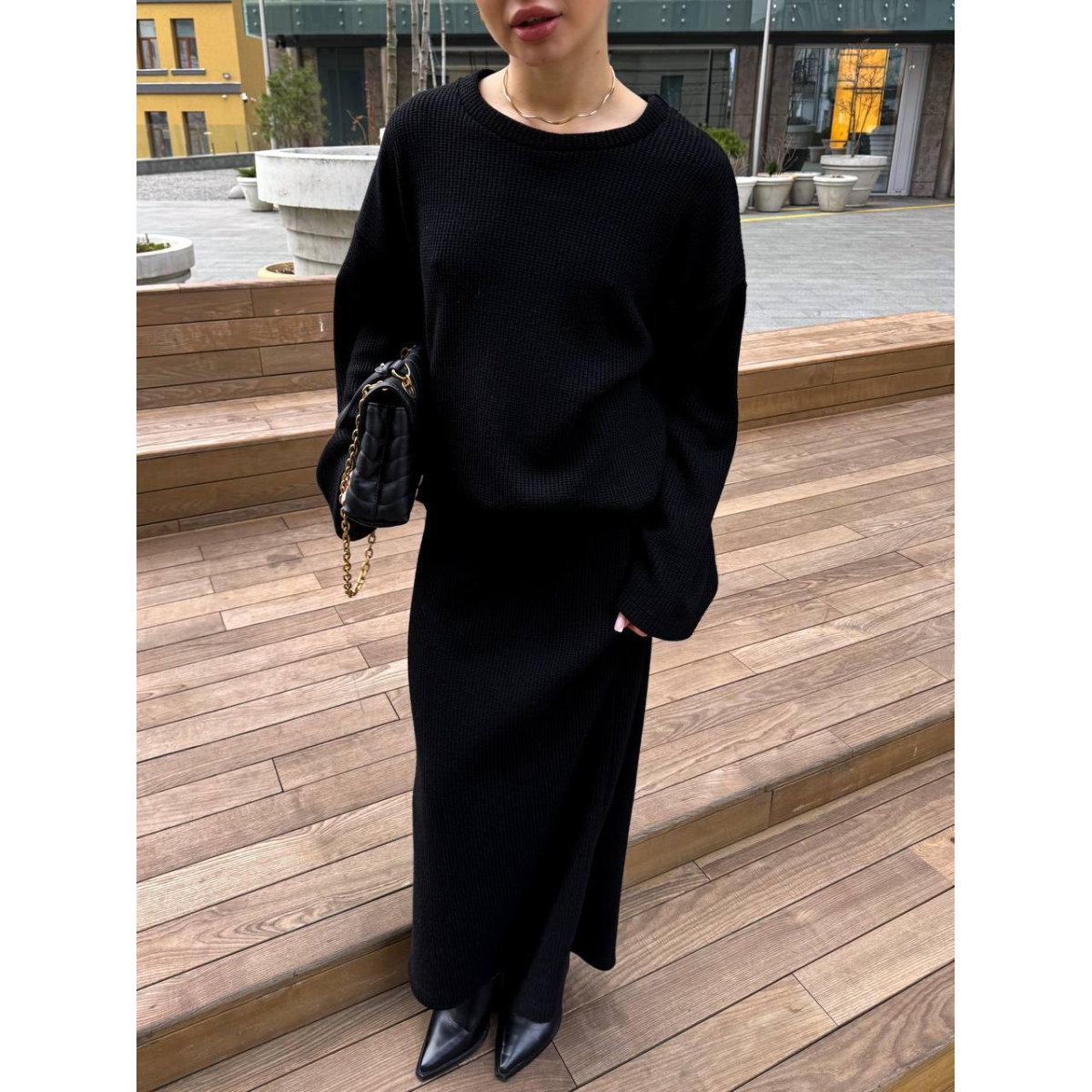 Жіночий в“язаний костюм з юбкою Чорний, 46/48