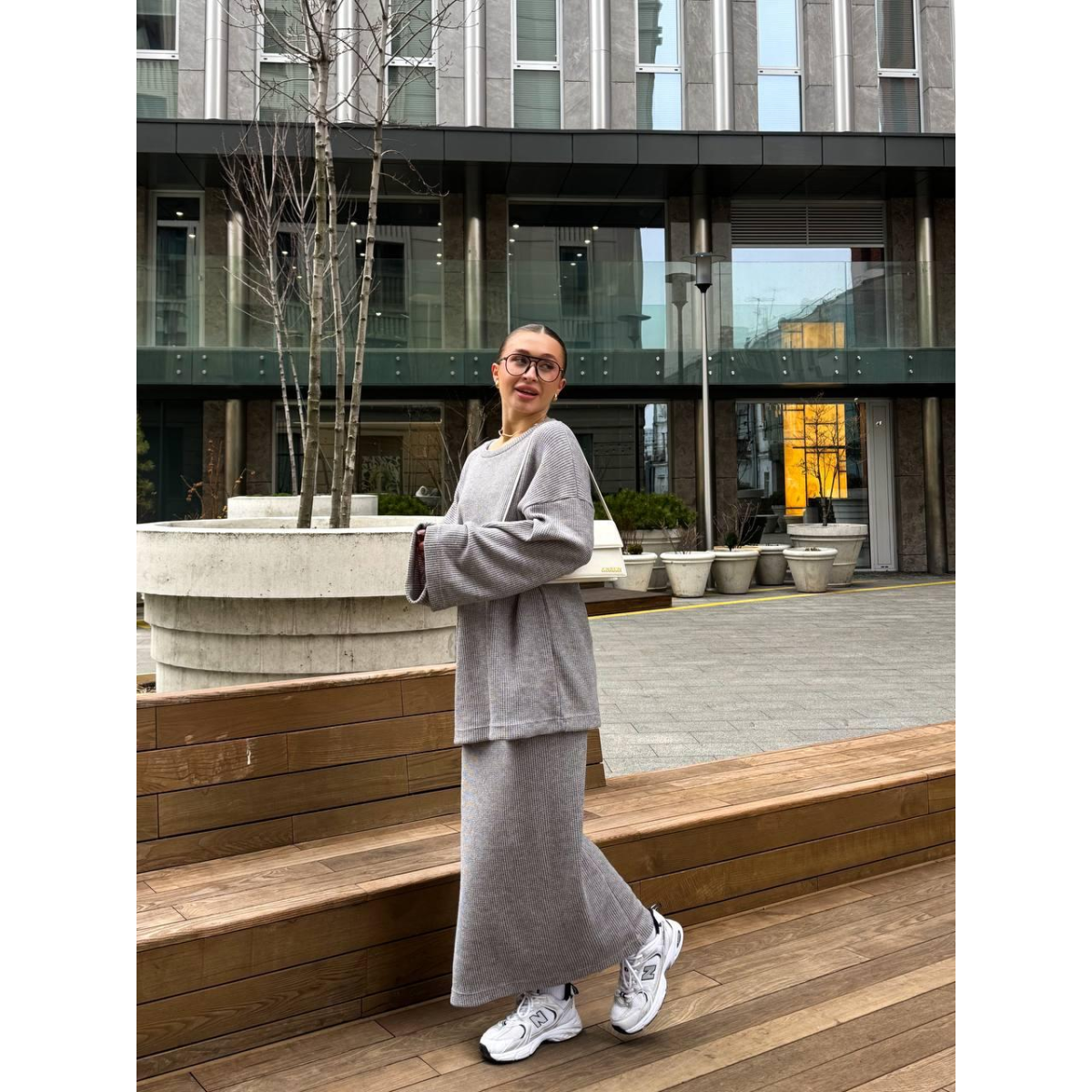 Жіночий в“язаний костюм з юбкою Сірий 42/44