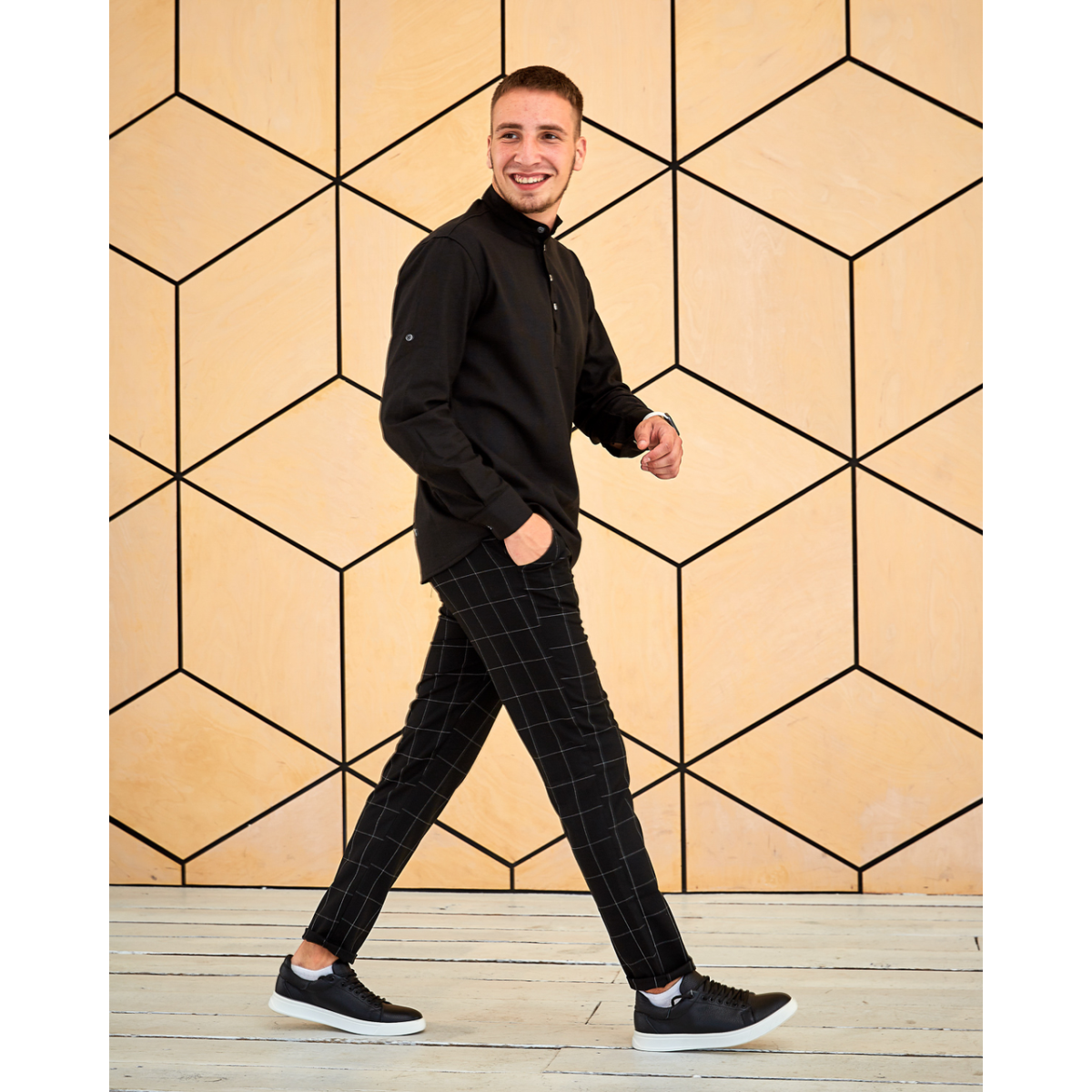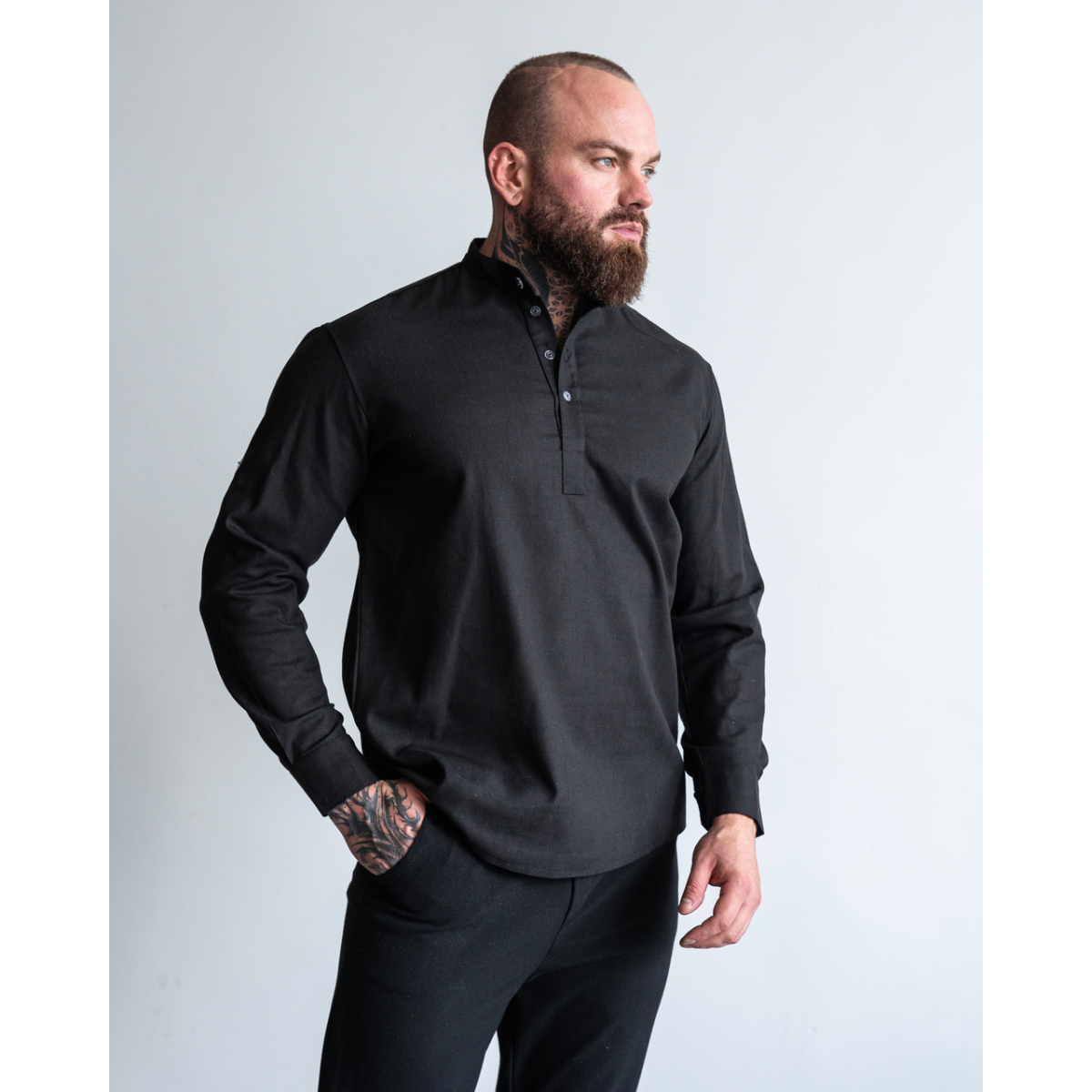 Сорочка льон довгий рукав чорний M
