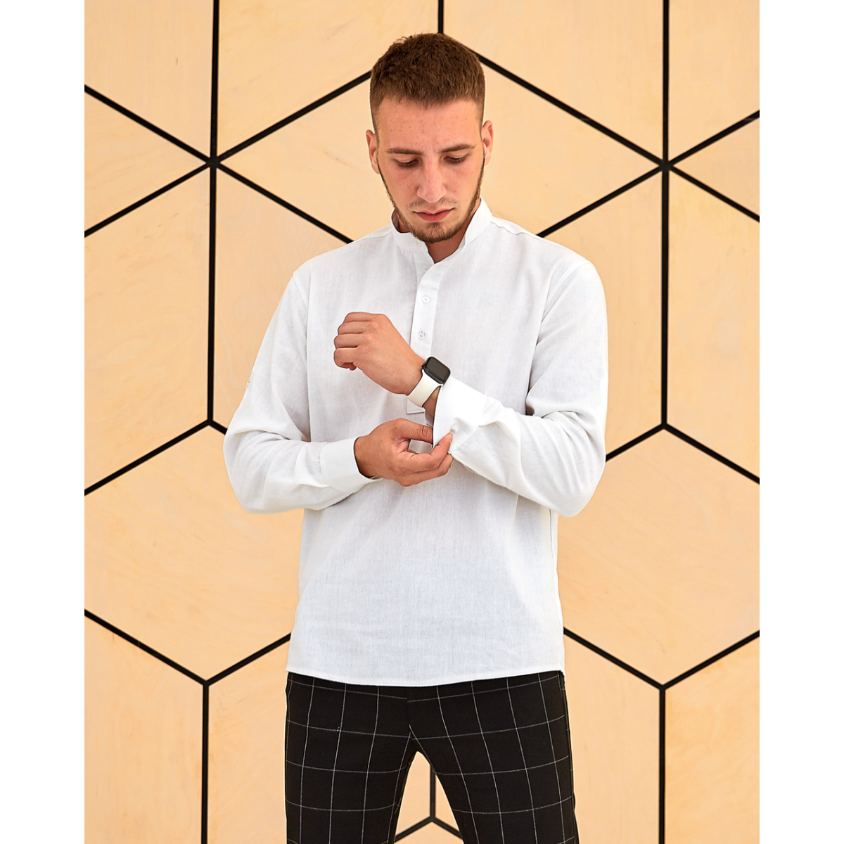Сорочка льон довгий рукав білий XL