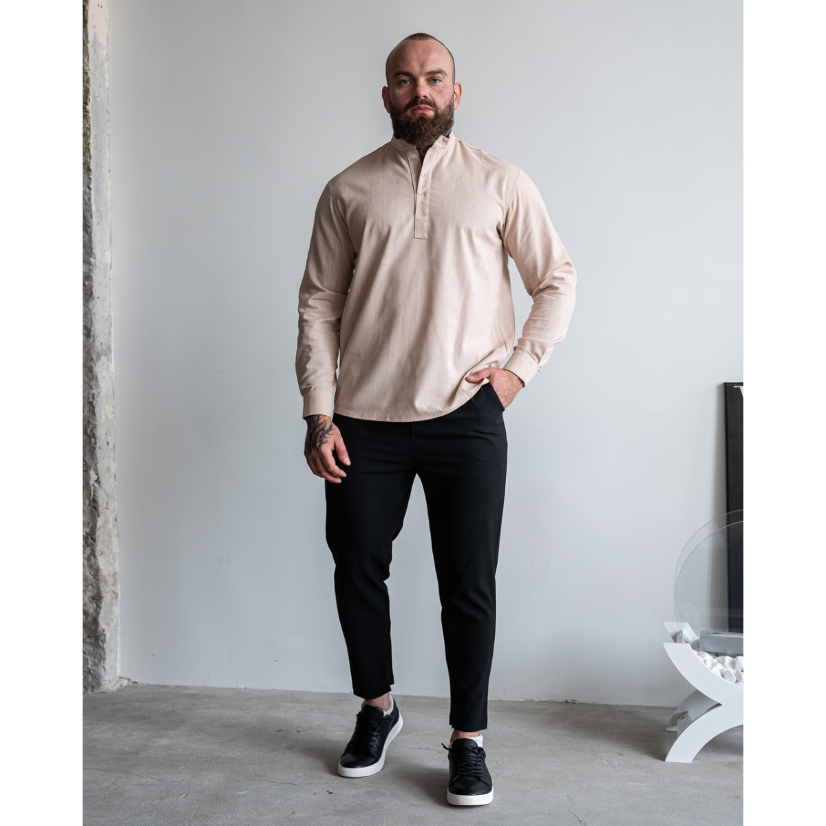 Сорочка льон довгий рукав бежевий S