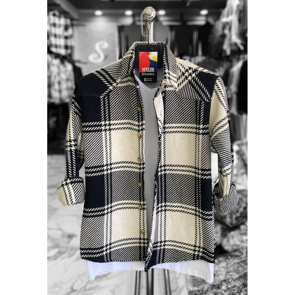 Тепла сорочка Бейджин чорно-білий L